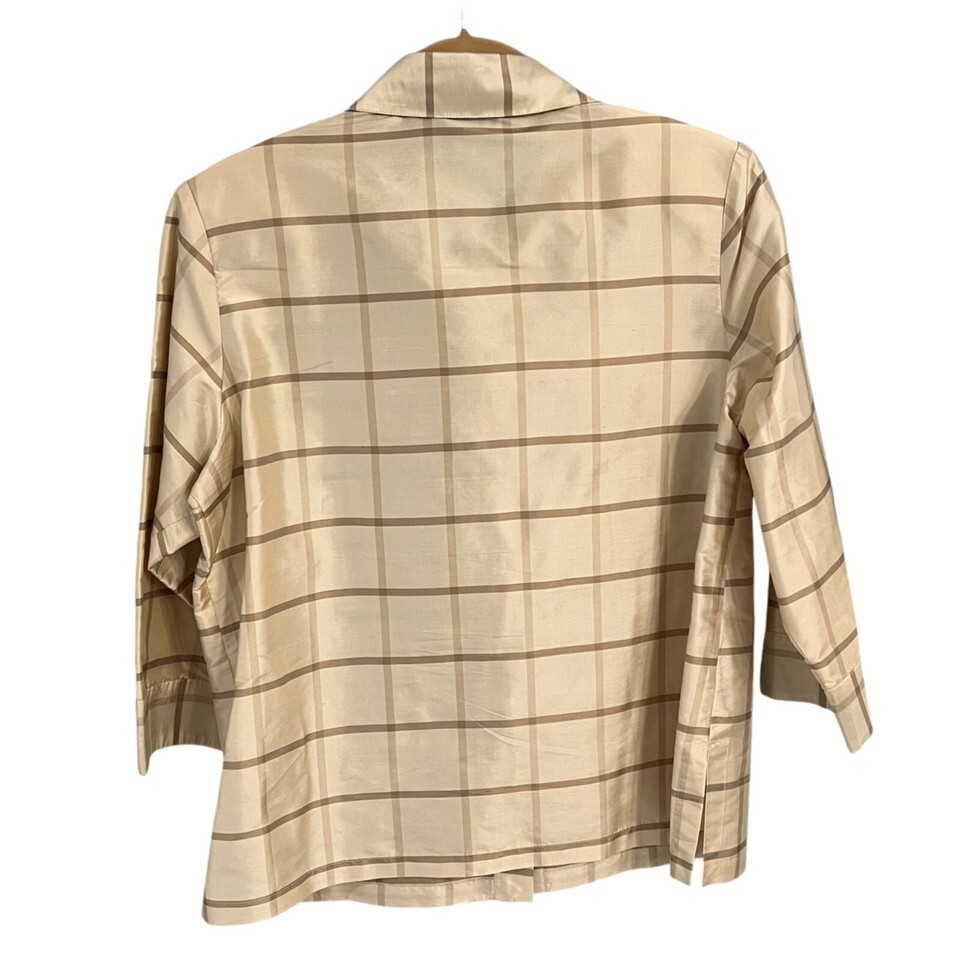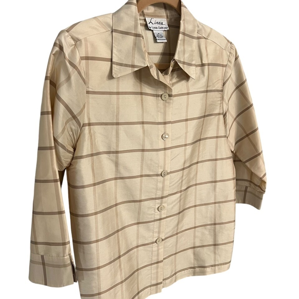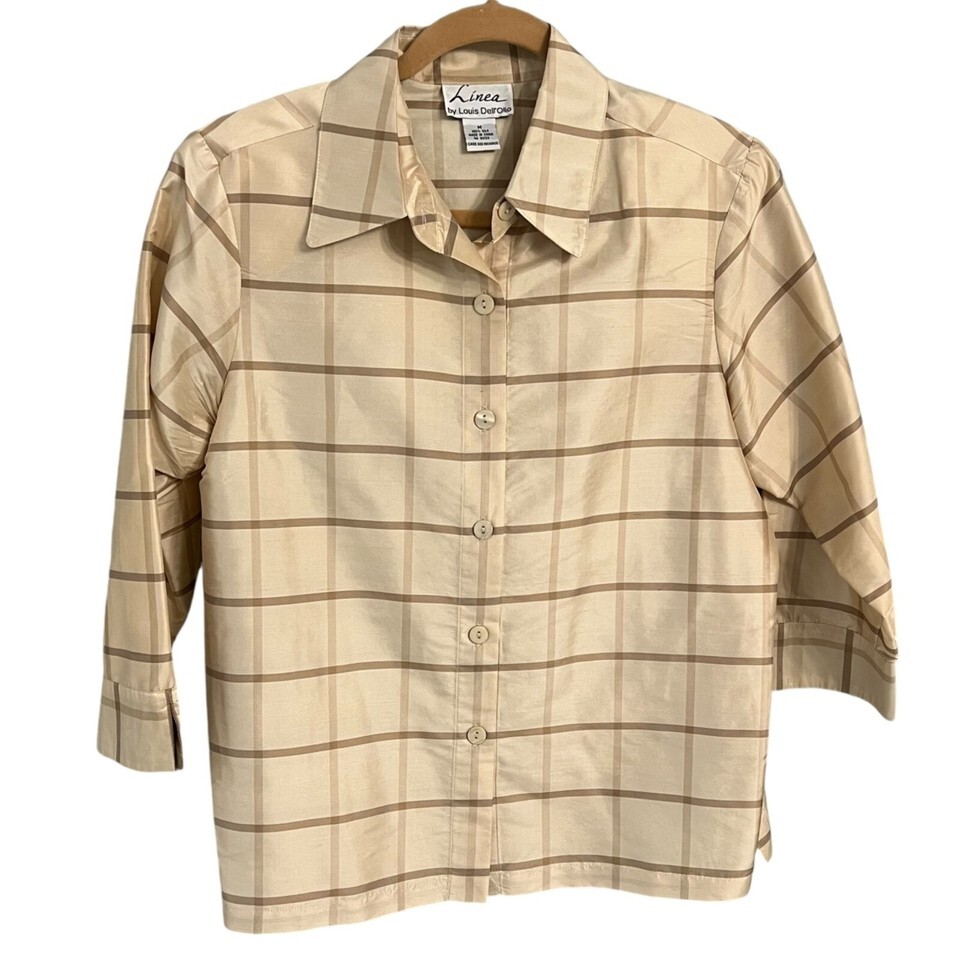 Linea By Louis DellOlio Medium Window Plaid Silk Button-Up Shirt Beige & Brown