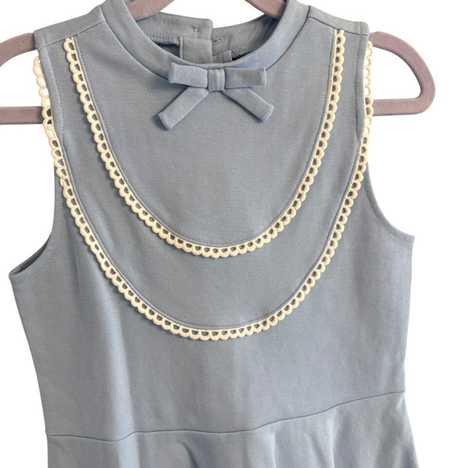 Girls Size 8 Janie And Jack Sleeveless Blue Ponte Dress Bow & Lace Trim Accents
