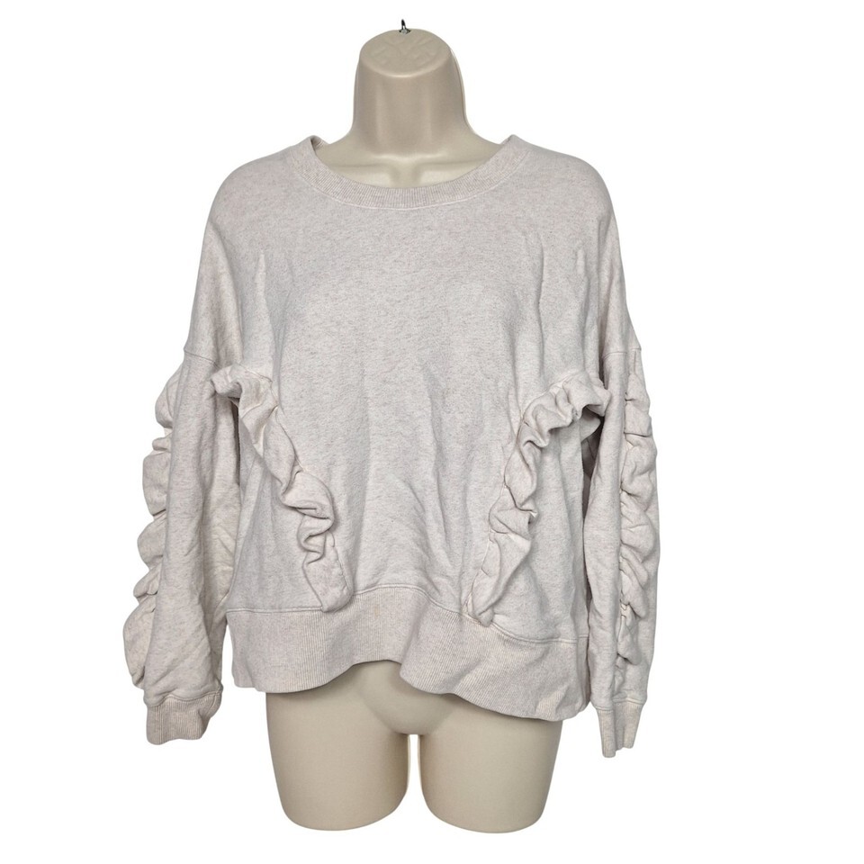 MADEWELL miles M Cream Ruffle Sleeve Sweatshirt Coquette Cozy Chic Pullover