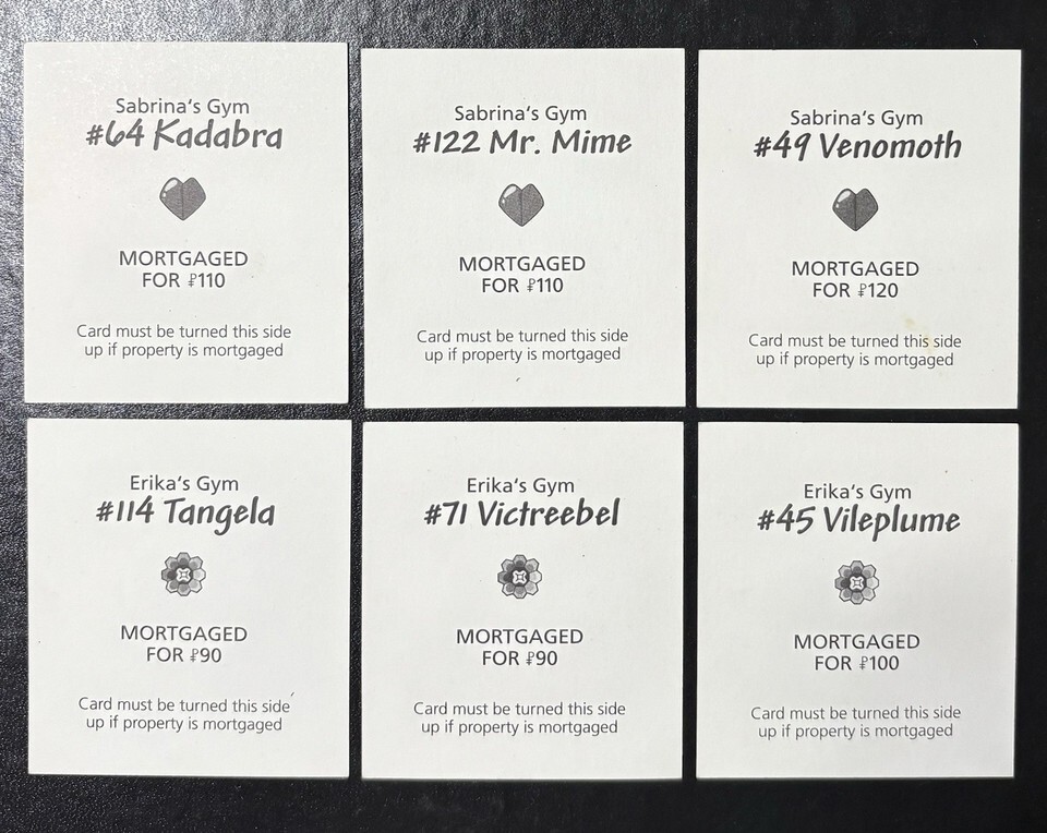 Pokemon Monopoly 1999 Collectors Edition Replacement Pieces: 6 Property Cards