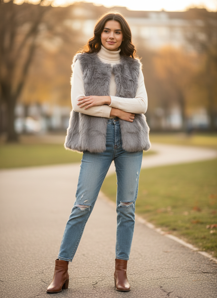 Women Vest La Fiorentina Women's Plush Rabbit Fur Vest Size Size S/M Gray