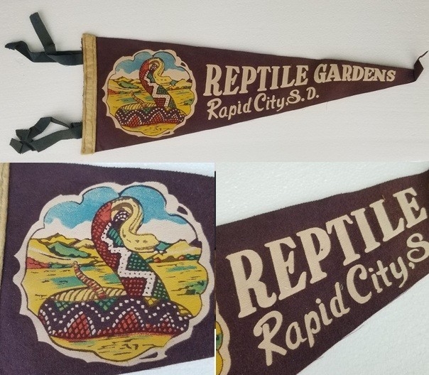 antique vintage felt pennant Reptile Gardens Rapid City SD 17" South Dakota