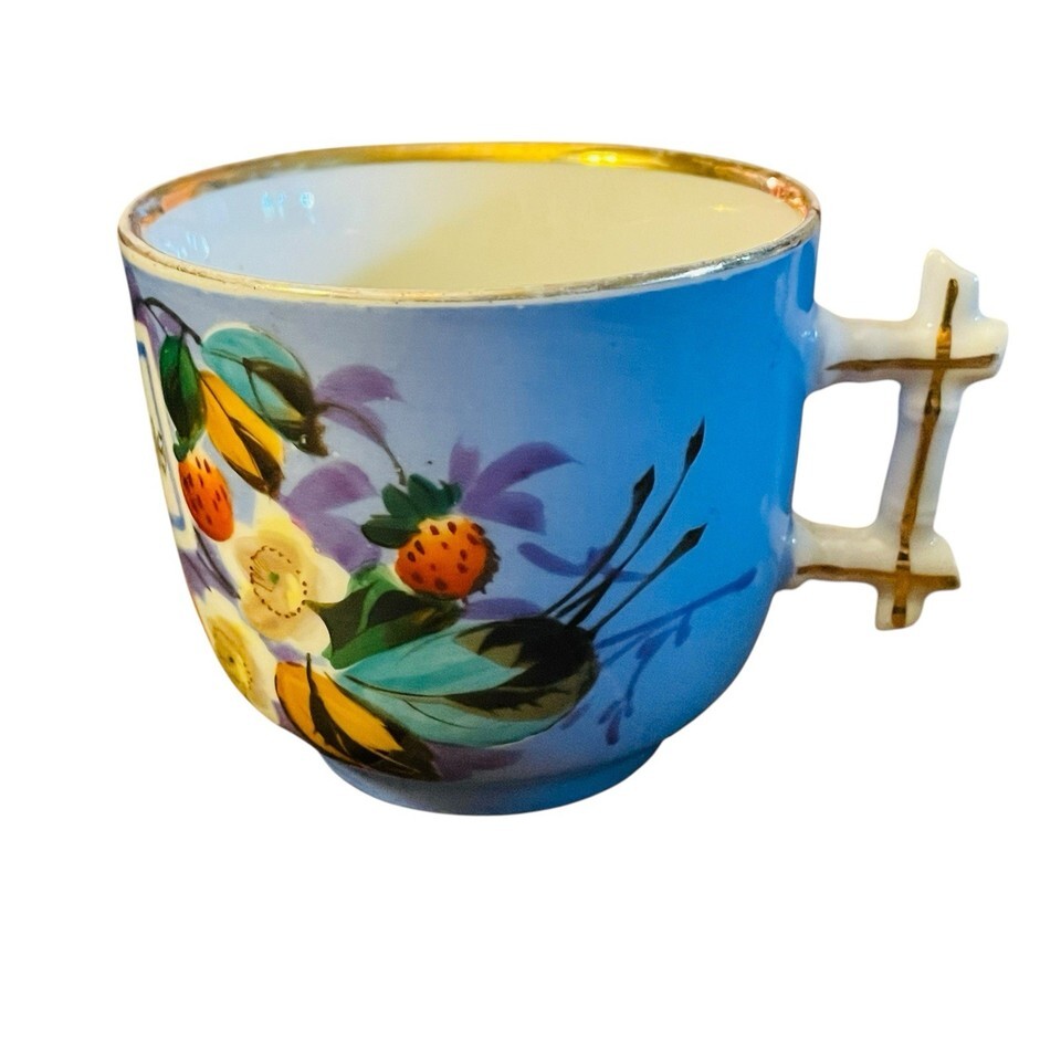 Vtg 1958 With Kind Regards Mustache Mug Cup Asian Floral Berries Hand Painted