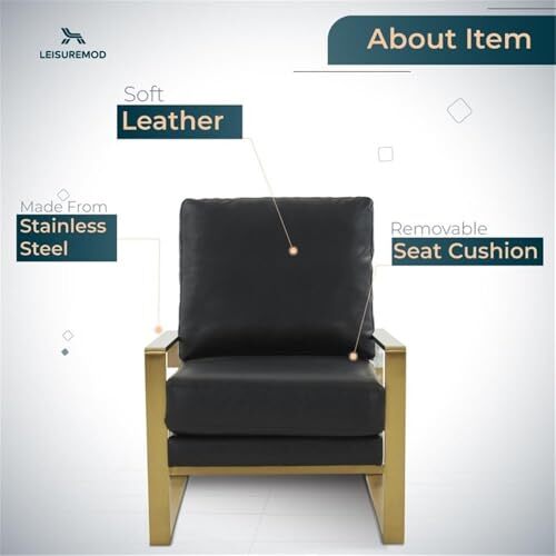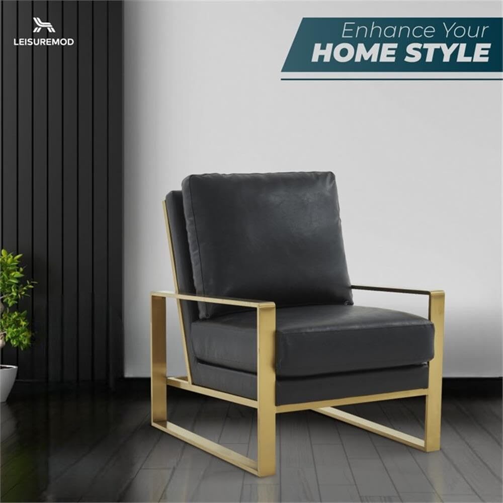 LeisureMod Jefferson Leather Accent Armchair with Elegant Gold Frame Modern Livi