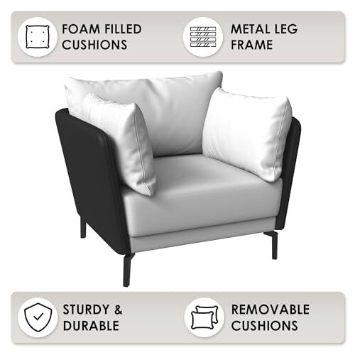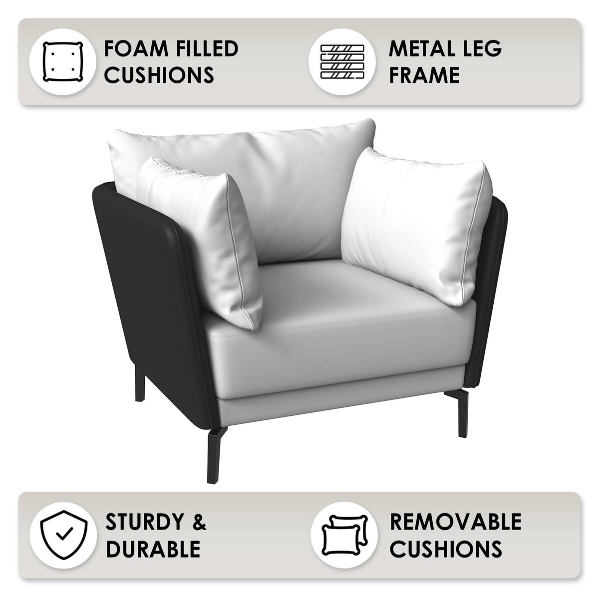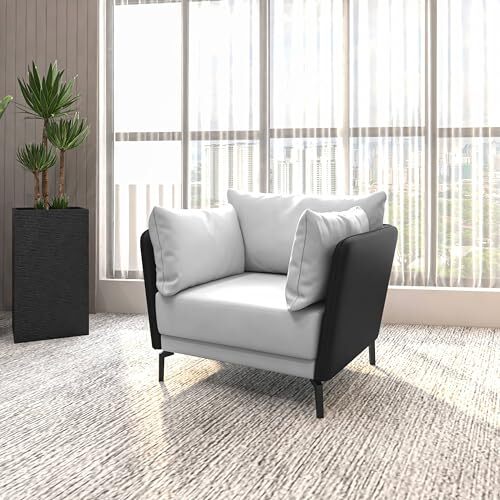 Bullet point: [MODERN DESIGN] The single-seater sofa features a modern design that captures the essence of contemporary elegance. Made with premium vegan leather and soft foam filling, it looks inviting and feels cozy. It fits any decor, making it perfect for those who value both looks and quality.
