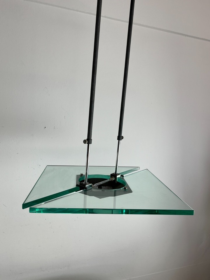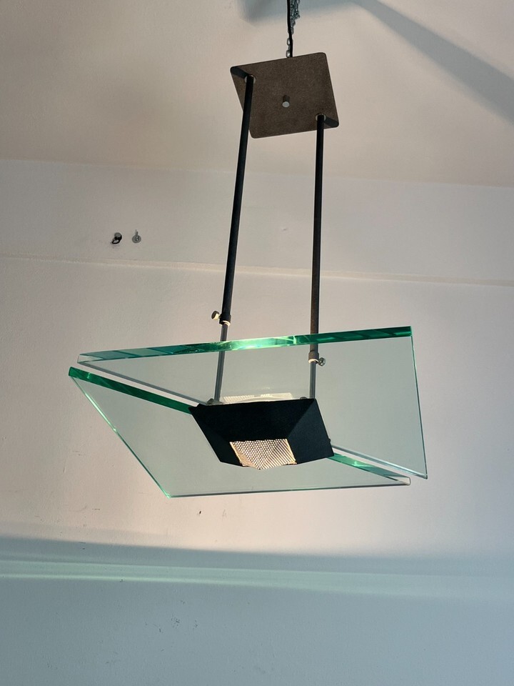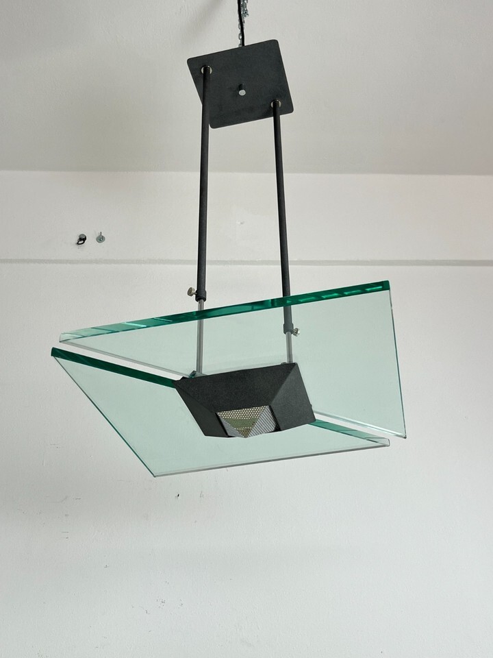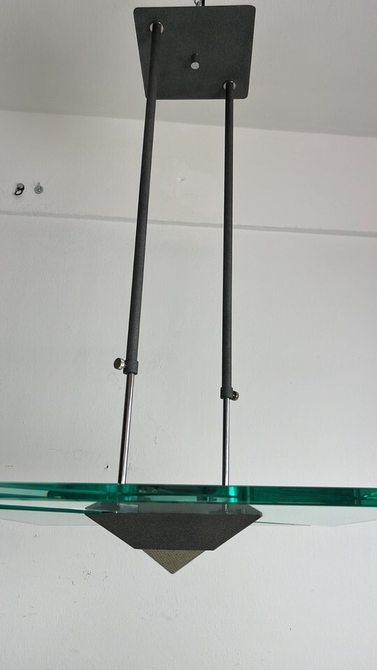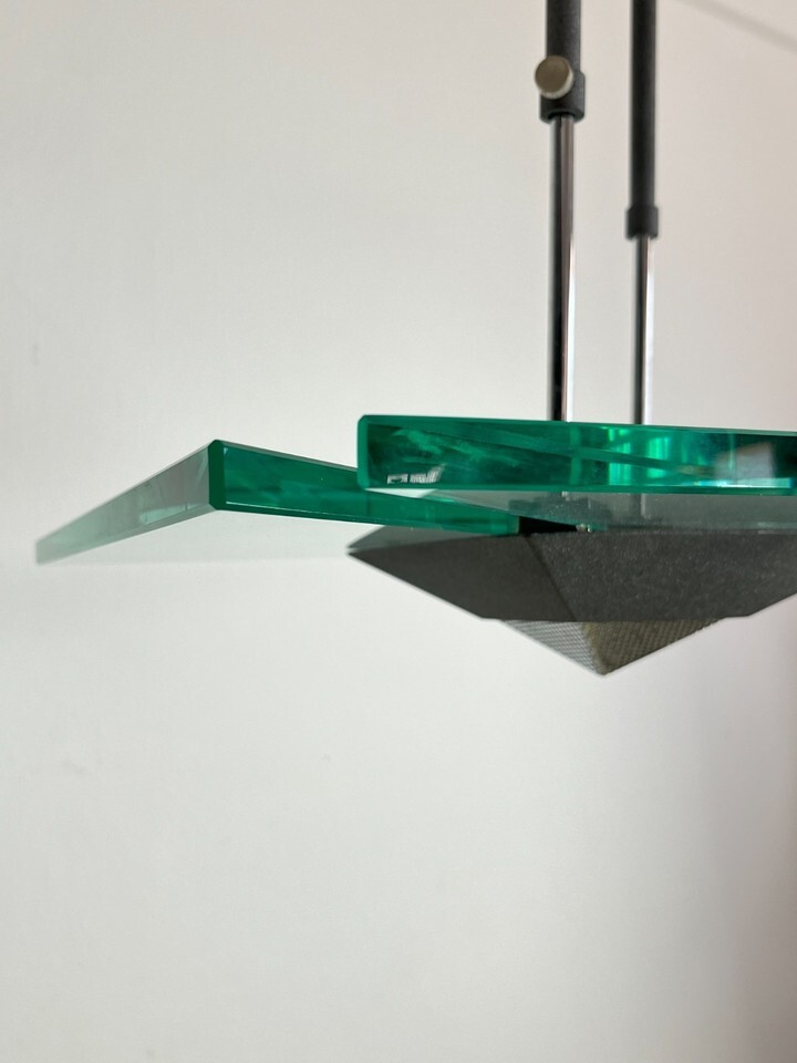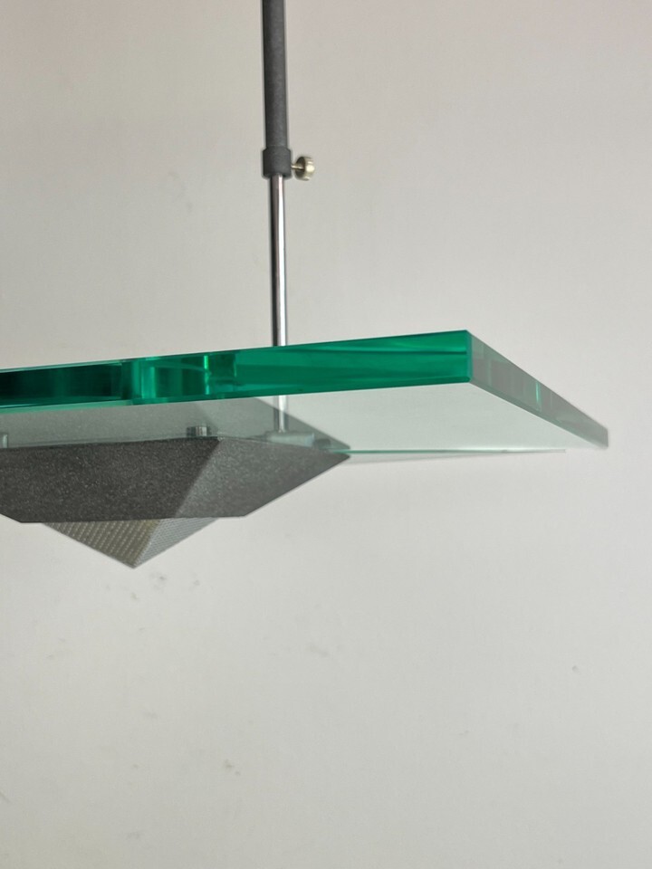 Laampadario vetro di Murano Verde Nilo nello stile di Fontana Arte, anni '80.