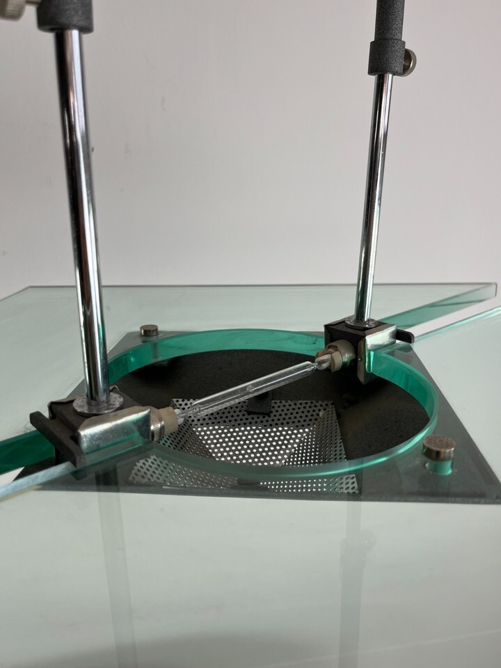 Struttura in metallo. Lampada alogena. Condizioni buone, vetri integri.