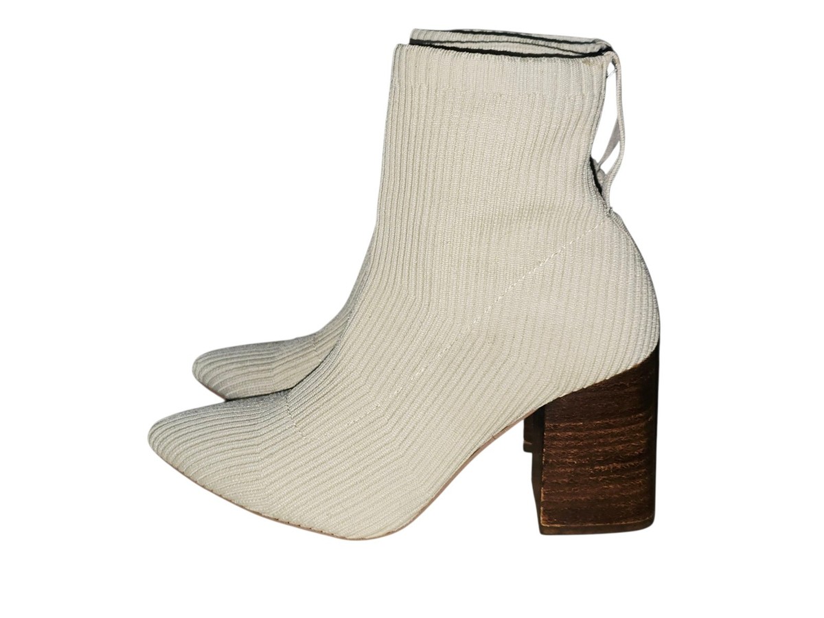 STEVEN By Steve Madden Neta Cream Knit Heeled Ankle Boots Women Size 7.5