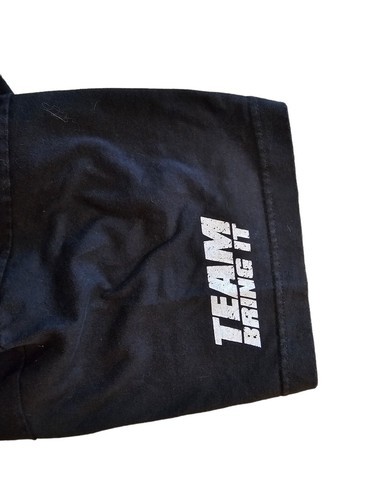 This authentic WWE "The Rock" shirt in size 2X features a solid black color with a crew neck and short sleeves, showcasing The Rock's character and logo on both sides. Made of cotton knit fabric, this regular fit T-shirt is machine washable for easy care. The design pays homage to The Rock's iconic catchphrase "Boots 2 Asses Team Bring It," making it a must-have for fans of The Rock and WWE.