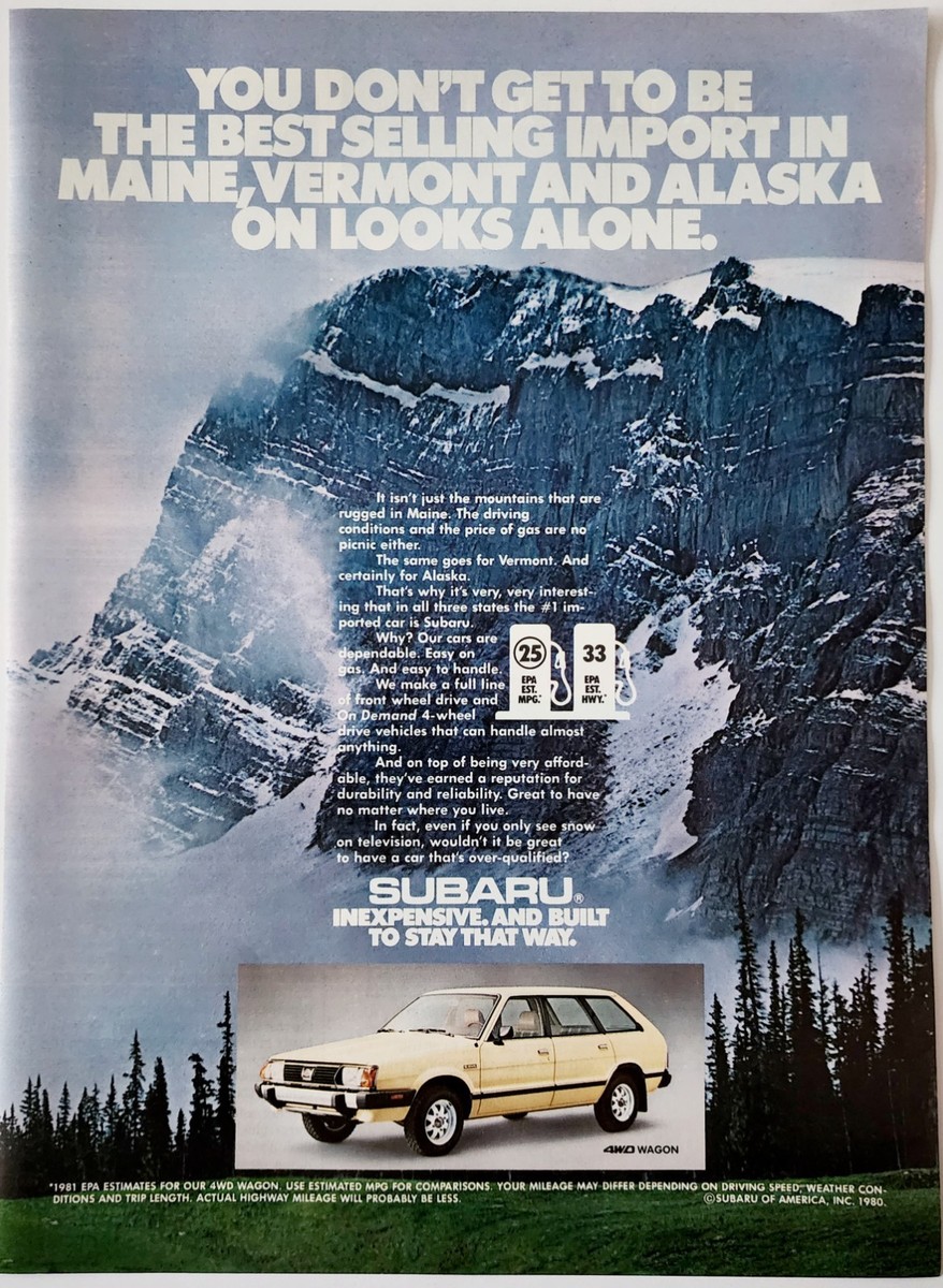 1981 Subaru 4WD Wagon Advertisement Automobilia Vintage Maine Alaska DWKK29