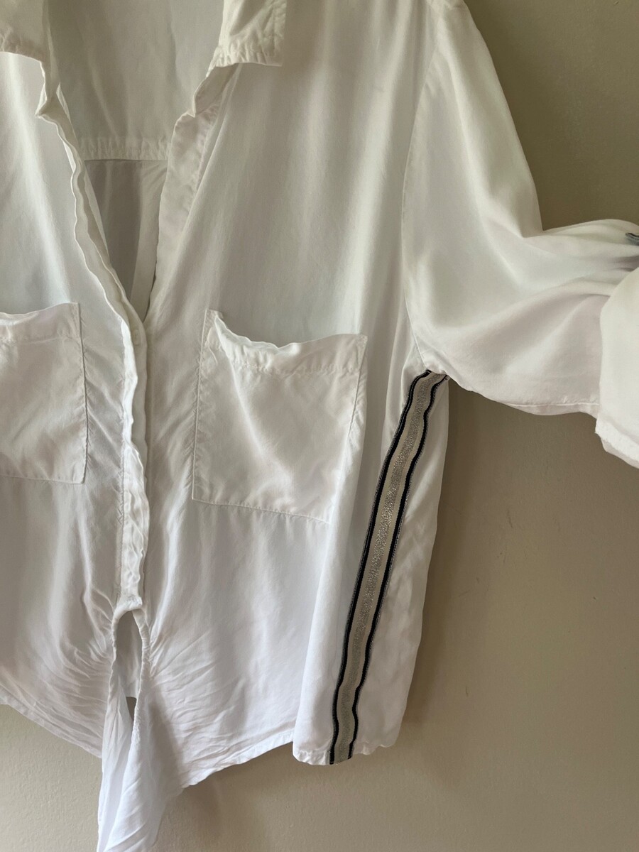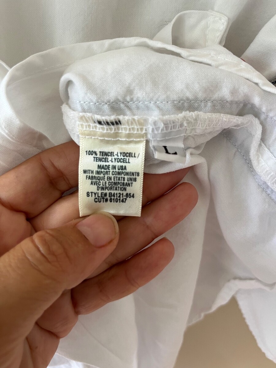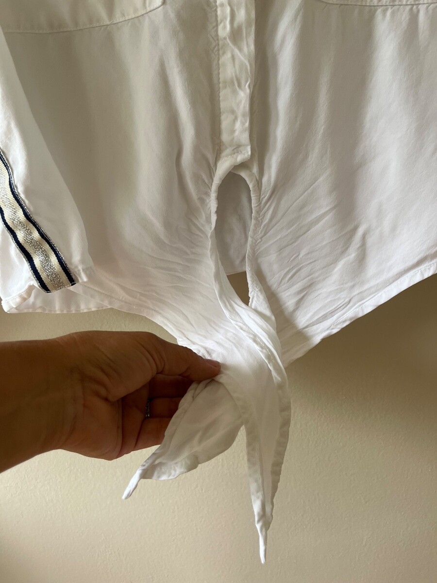 Bella Dahl Sz L Tencel Pockets Tie Front Shirt V Neck Blouse White Blouse