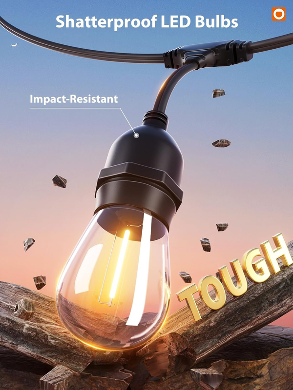 LED Outdoor String Lights 48FT with Edison Vintage Shatterproof Bulbs and Commer