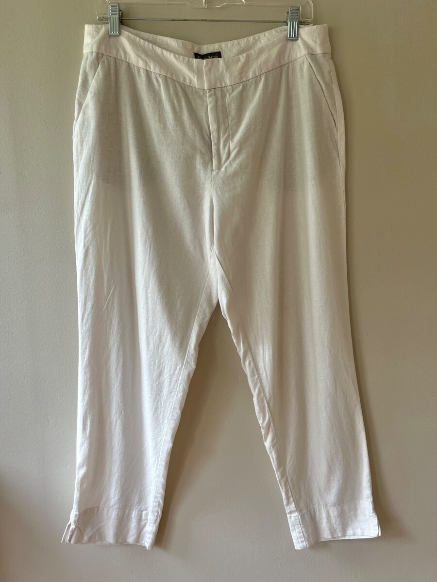 Style n Co Sz 12 Linen Blend White Cropped Ankle Pants Hand Pockets Mid Rise