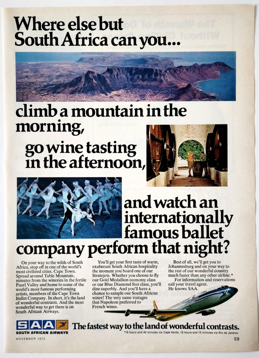 1975 South African Airlines Advertisement Vintage Aviation SAA Travel DWKK29