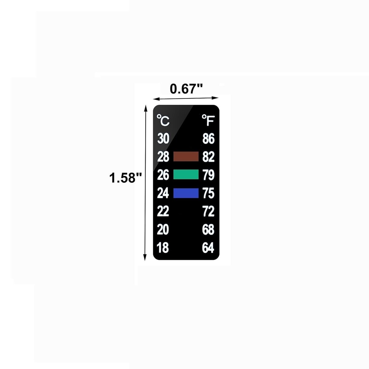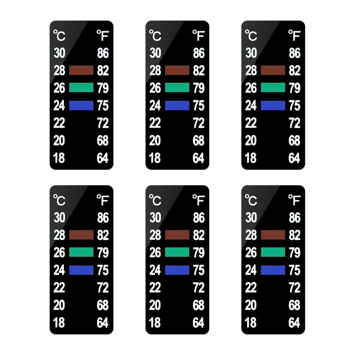 Includes: 6pcs aquarium thermometer strips. Dimension: 1.58" (L) x 0.67" (W)