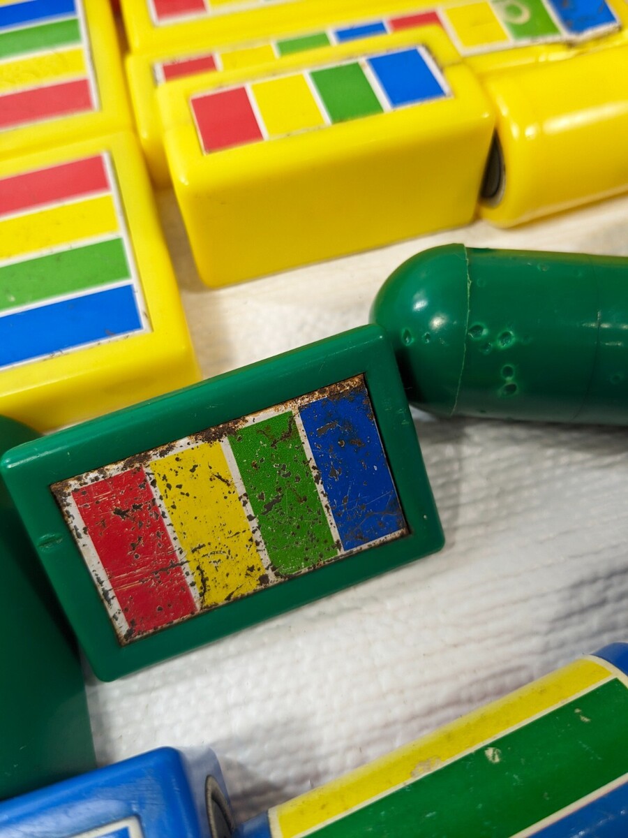 Vintage Hilco Bucket set 22 Magnet Blocks magnetic building toy rainbow primary