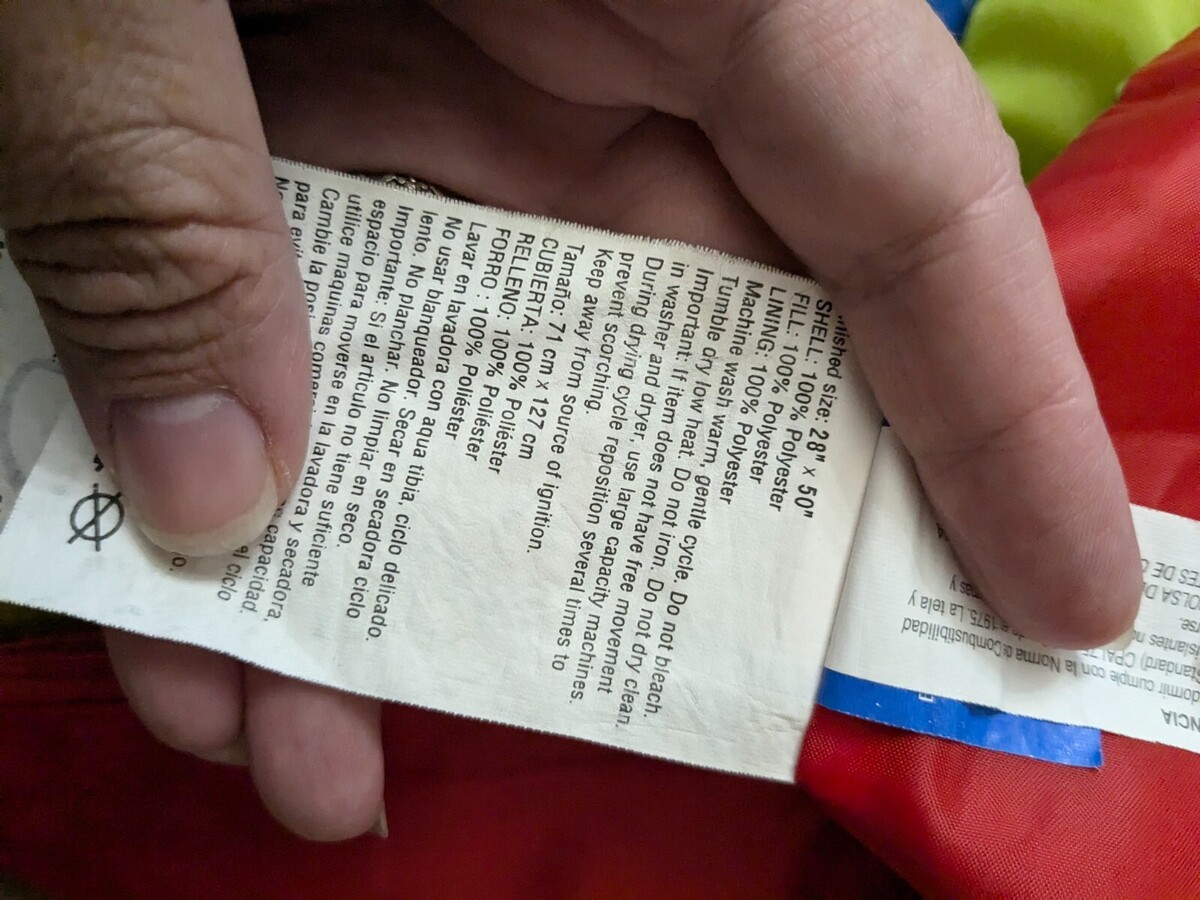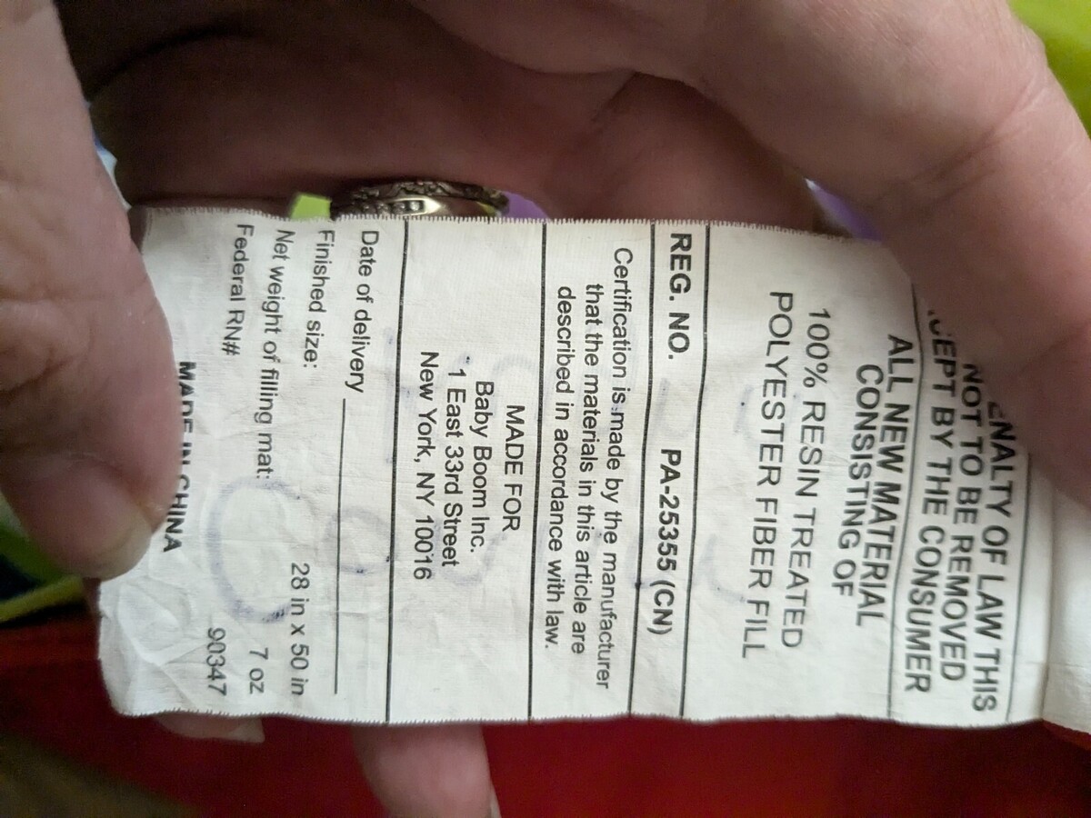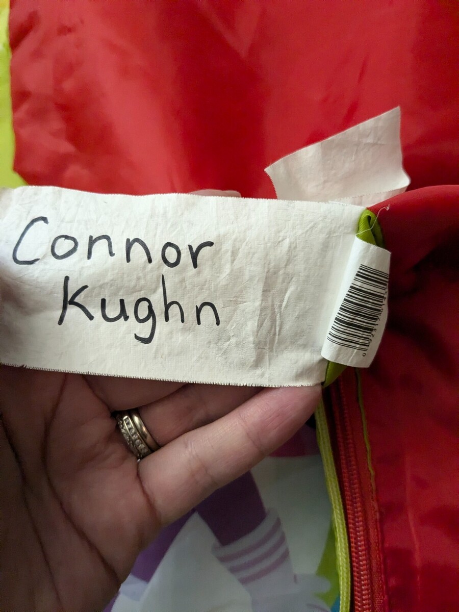 Zips up and can be easily folded into itself to be carried. Some minor cosmetic wear/marks. Tag has name written on it. Overall very good condition.