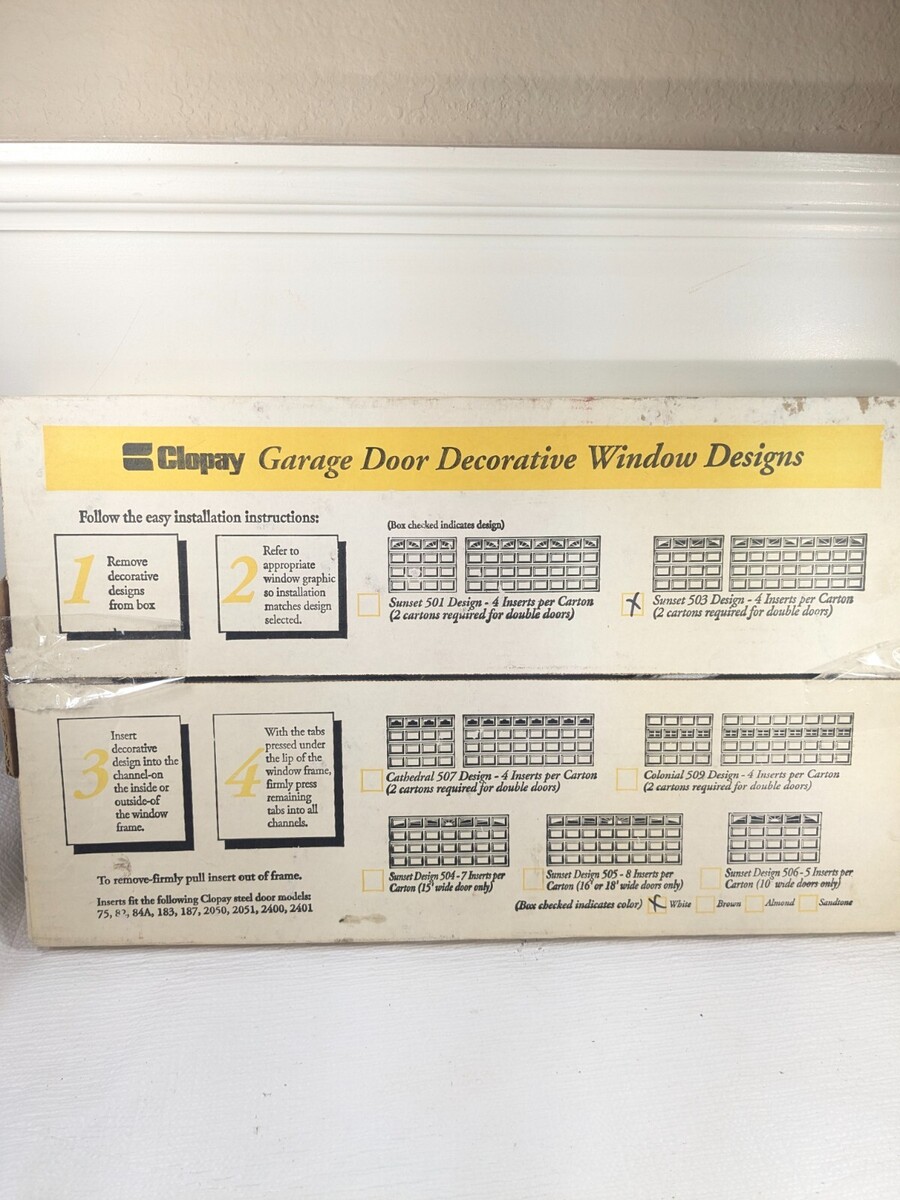 NEW CLOPAY Garage Door Decorative Window Design panel WHITE SUNSET 503 inserts