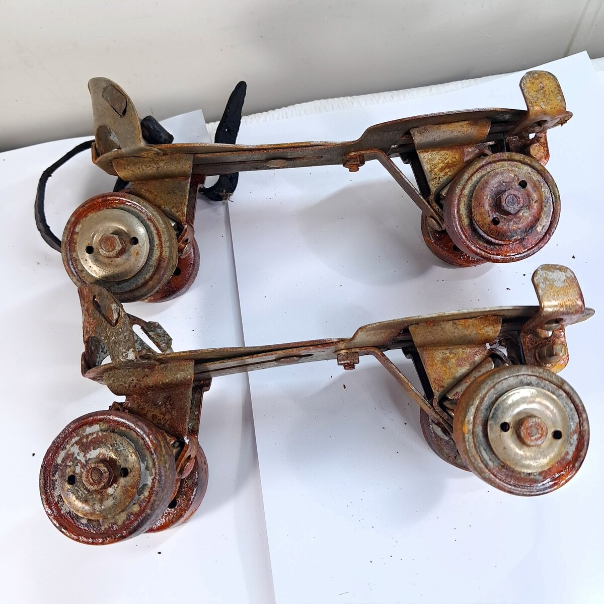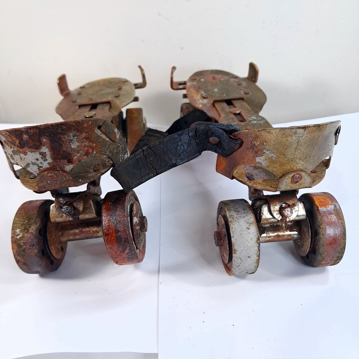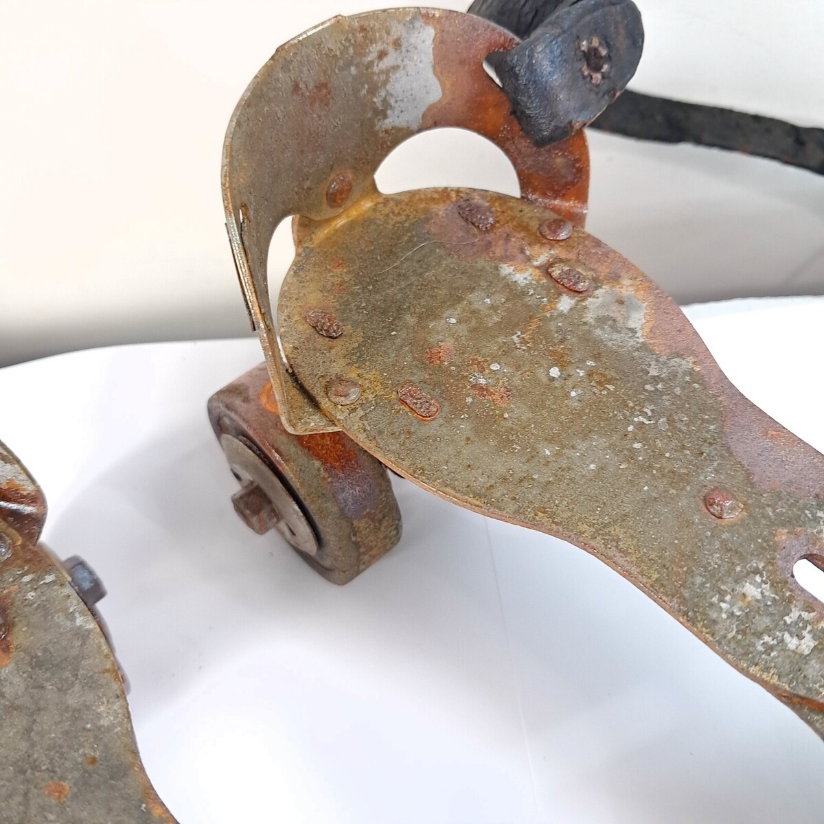 HEAVY rust and wear as shown. These are to be used as display/art ONLY. See all pics. One pair is missing a strap.