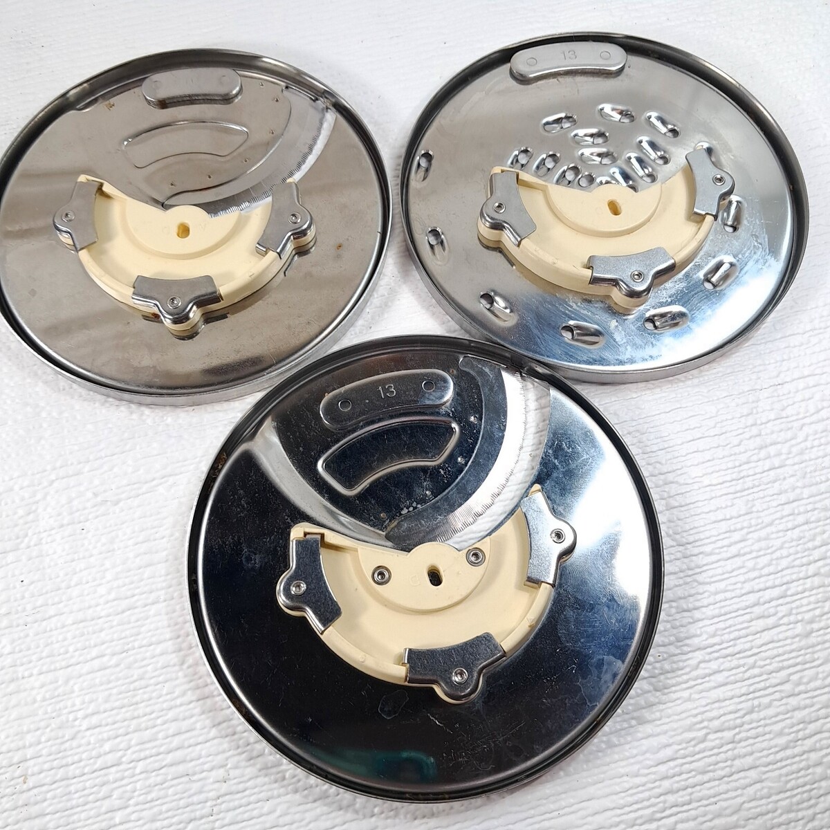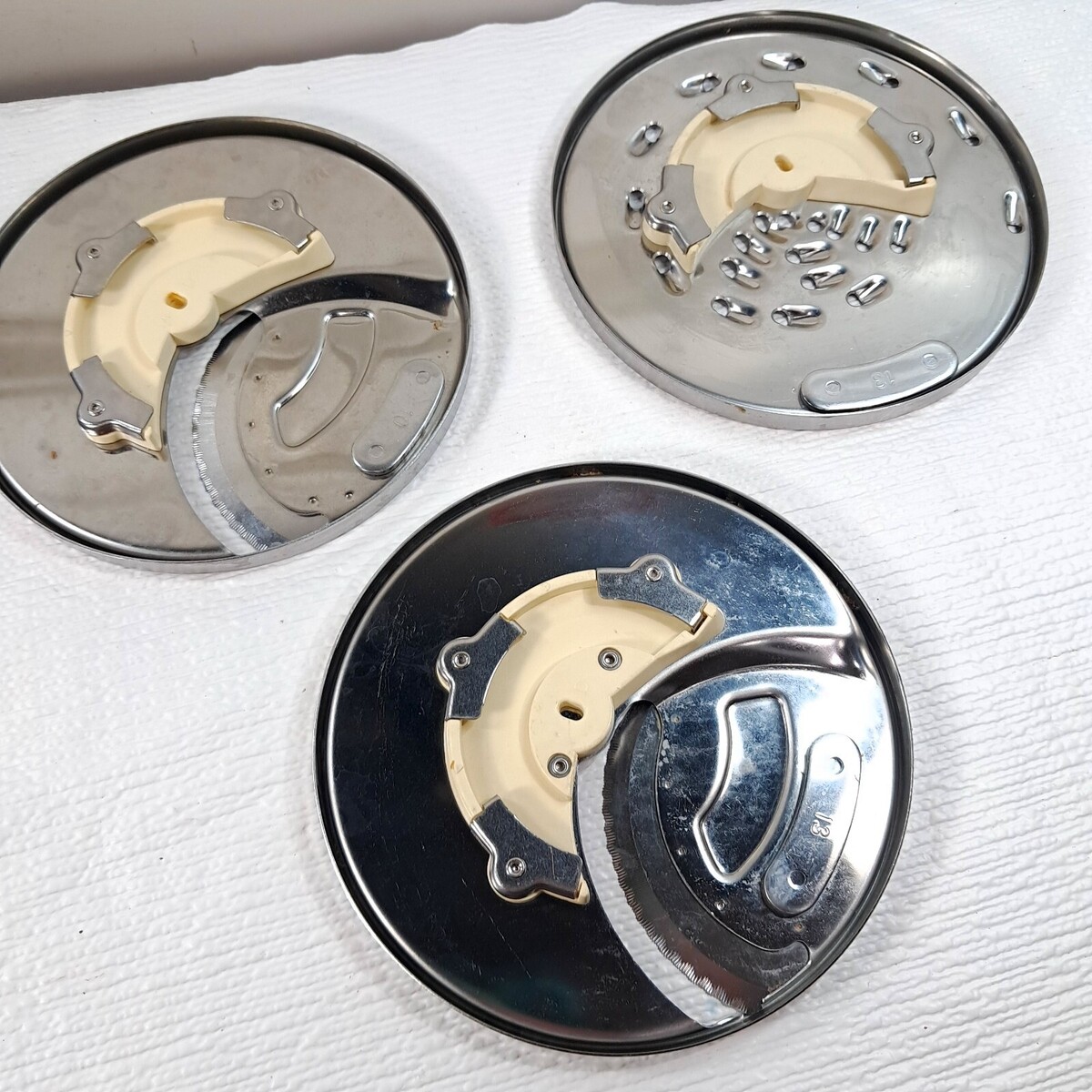Replacement cutting discs for Cuisinart food processor DLC-8 or DLC-10. Some minor marks from use, but overall good to very good condition. PARTS SHOWN ONLY. Includes discs: