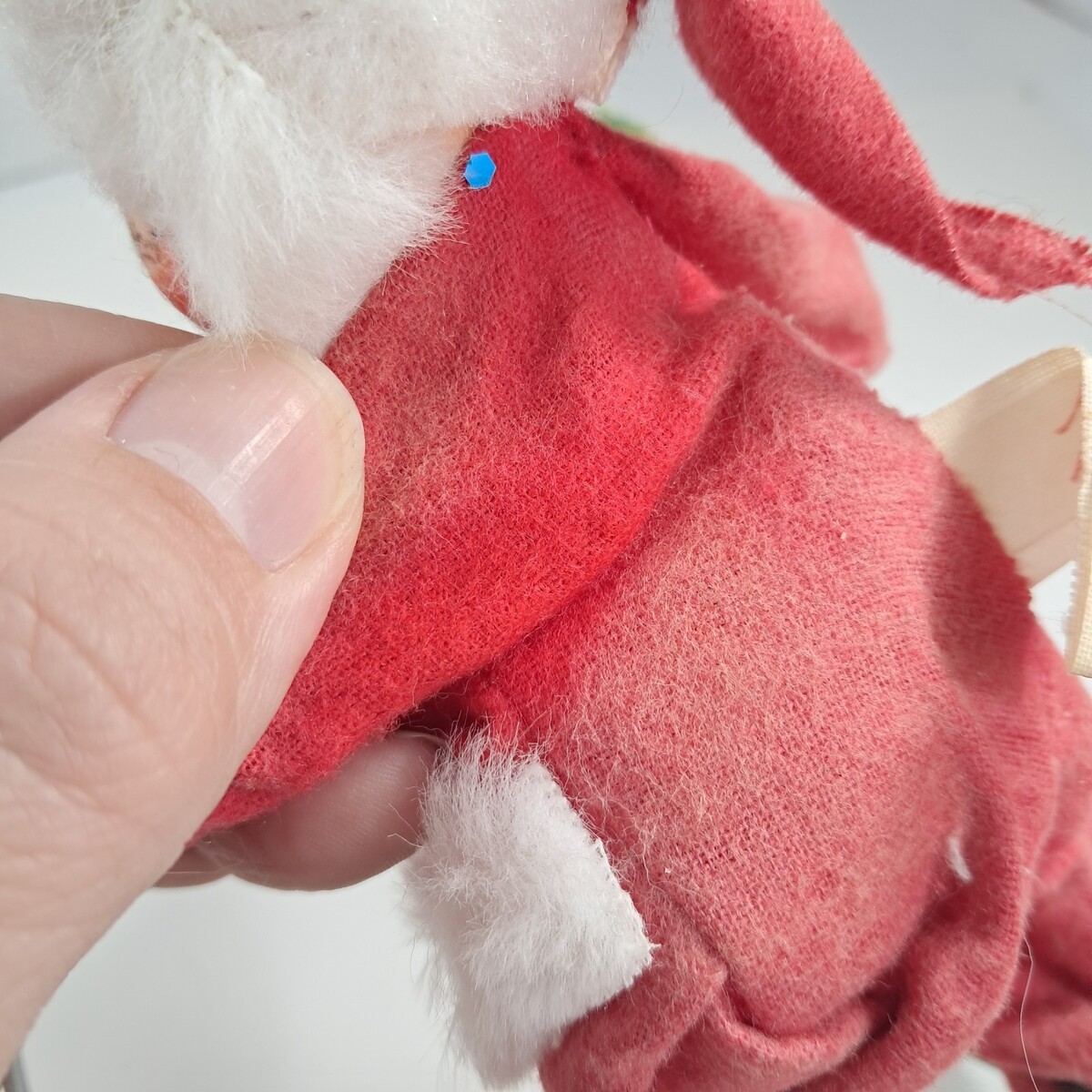 Felted figurine. Bendable/poseable. Felt is faded/discolored and there are some glue marks as shown. See pics.