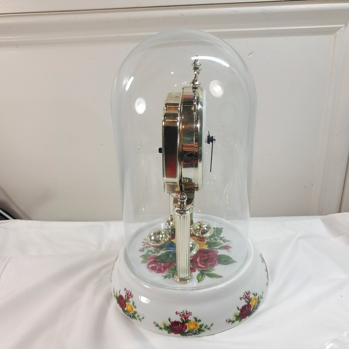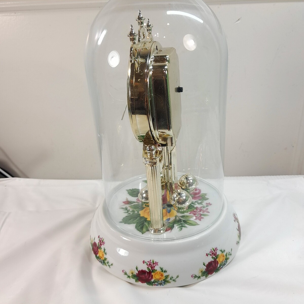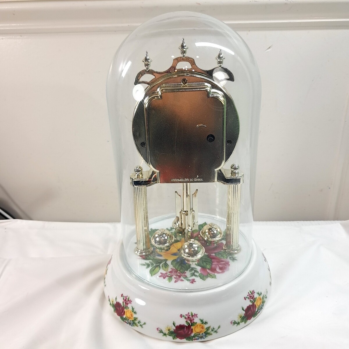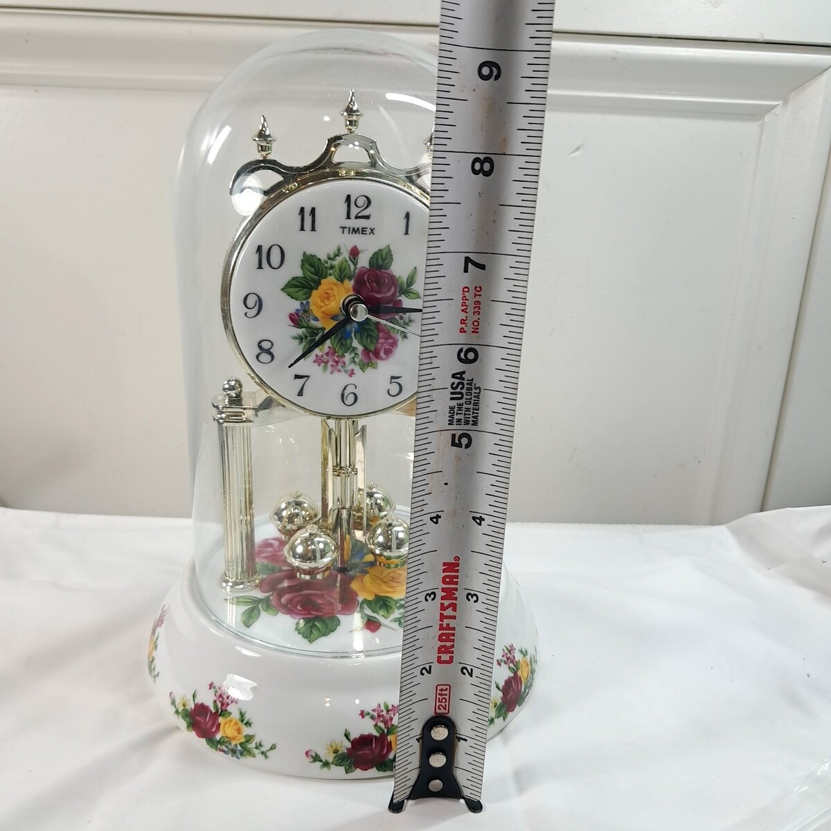 Timex Country Rose Anniversary Clock Glass Globe Mantle flowers floral READ