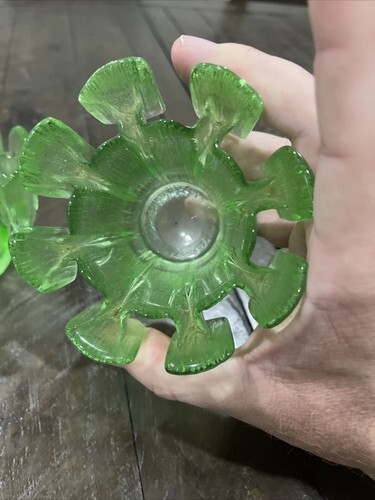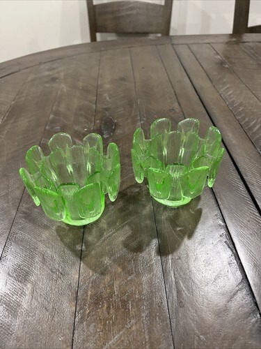 Viking Glass Spring Green Finnish Crown Candle Holder 3” Set Of 2