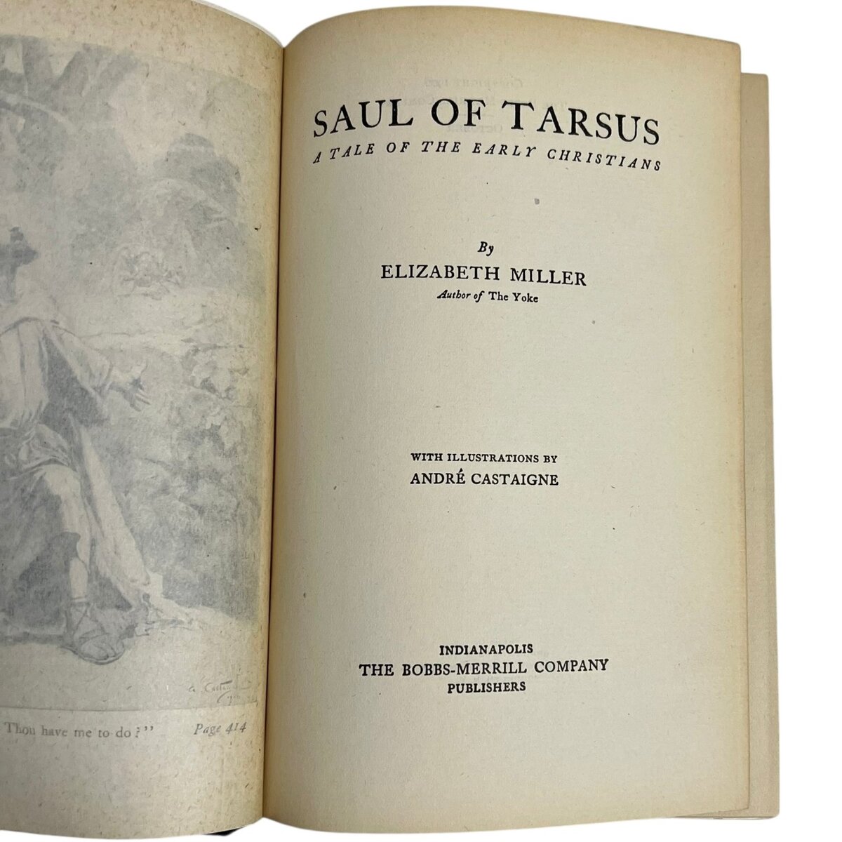 Saul of Tarsus: A Tale of the Early Christians by Elizabeth Miller is a captivating historical novel that delves into the transformative life of Saul, who later became the Apostle Paul. This 1906 first edition, published by The Bobbs-Merrill Company in Indianapolis, features beautiful illustrations by Andre Castaigne, adding a rich visual dimension to this compelling narrative. Perfect for collectors of early 20th-century religious fiction and historical literature.