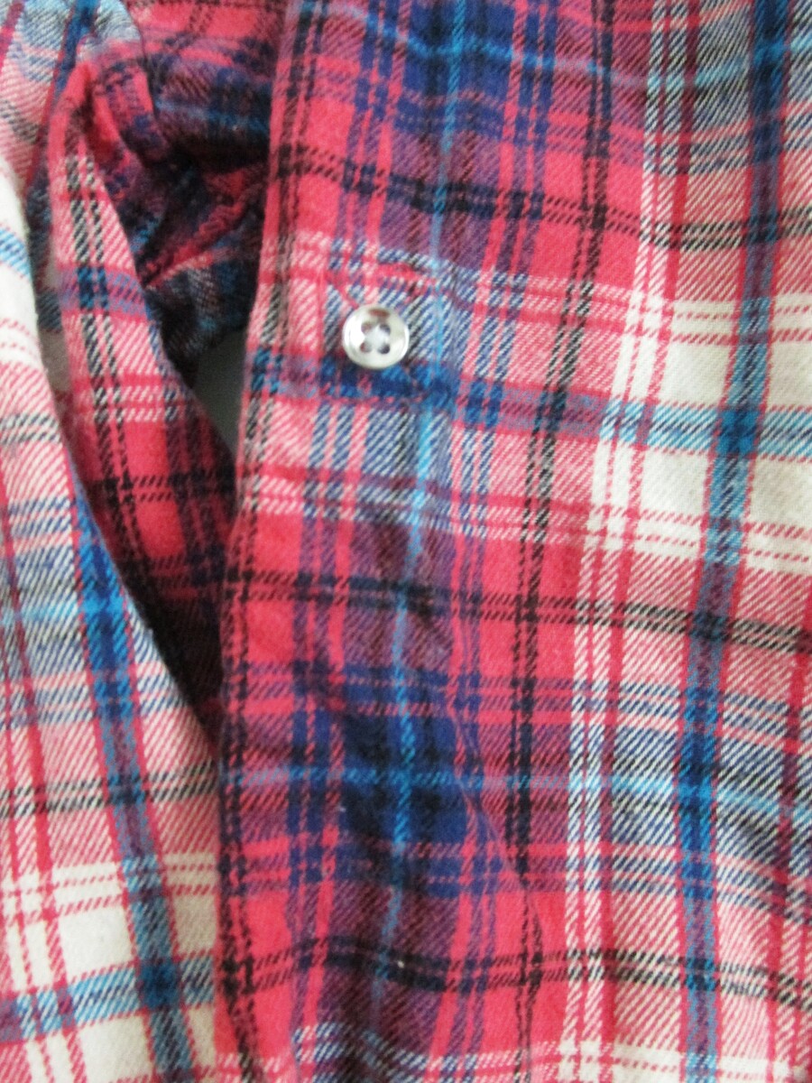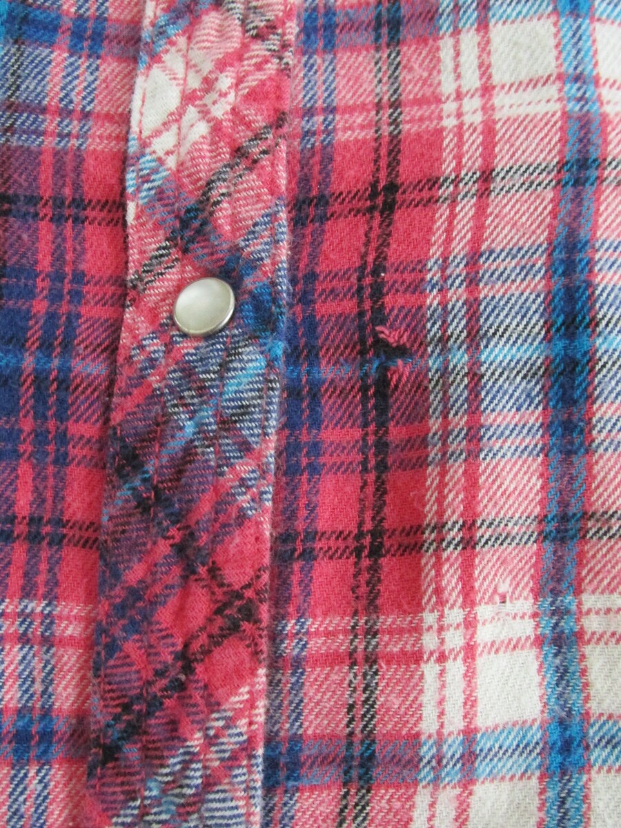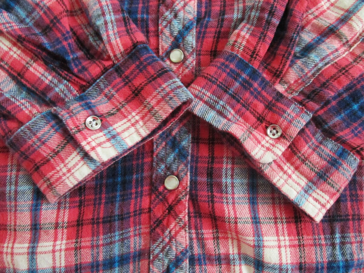 Description: Up for sale is a Bit Bridle western cotton flannel shirt. It is made of 100% cotton. The size is 2X (junior.) It has a multicolored plaid design in pink, blue, black, white. It has a full white snap button front cuffs and roll tab sleeves, with 2 snap button flap breast pockets. This shirt is in good condition, but does have an abrasion in the front. Please see picture 6.