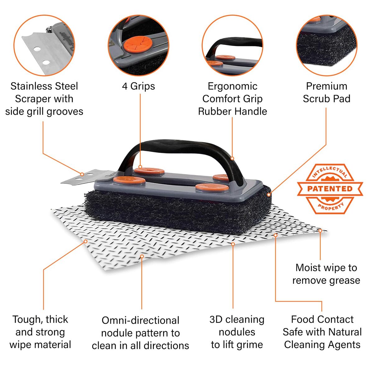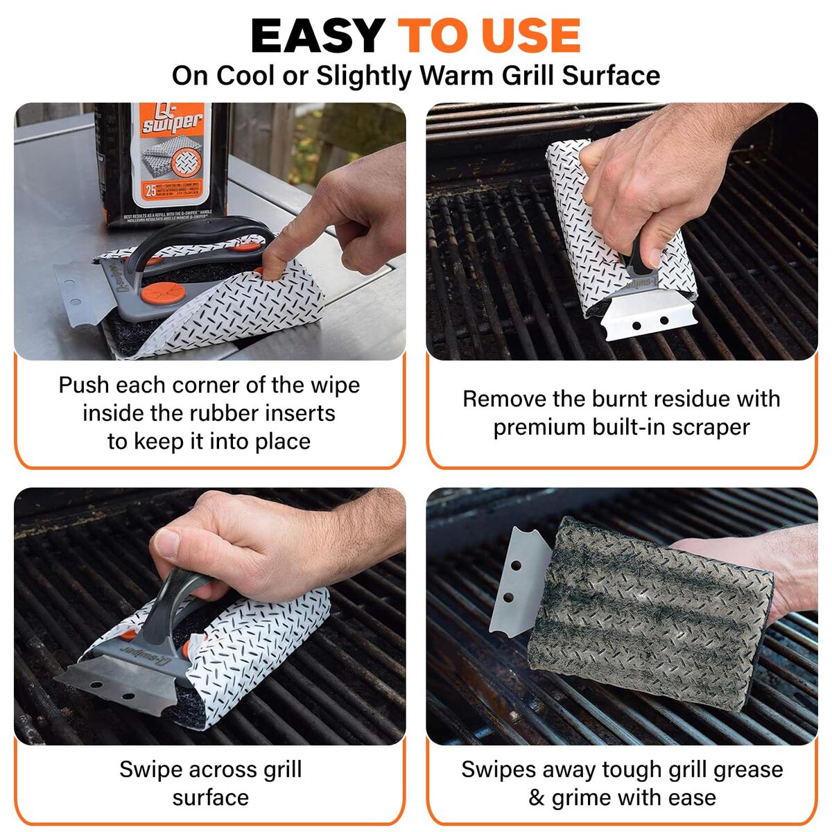 1 Handle Scraper + 25 BBQ Grill Cleaning Wipes |