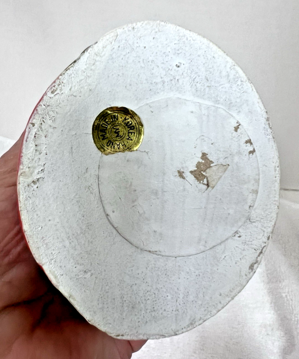 Vintage 6 1/2" Christmas Angel Red White Gown Red Flower in Hair MCM Great Shape In excellent shape we think she is made of a type of paper mache?
