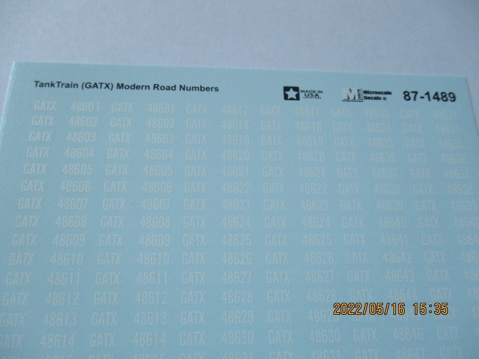 Microscale Decals Stock #87-1489 Tank Train (GATX) Modern Road Numbers HO-Scale