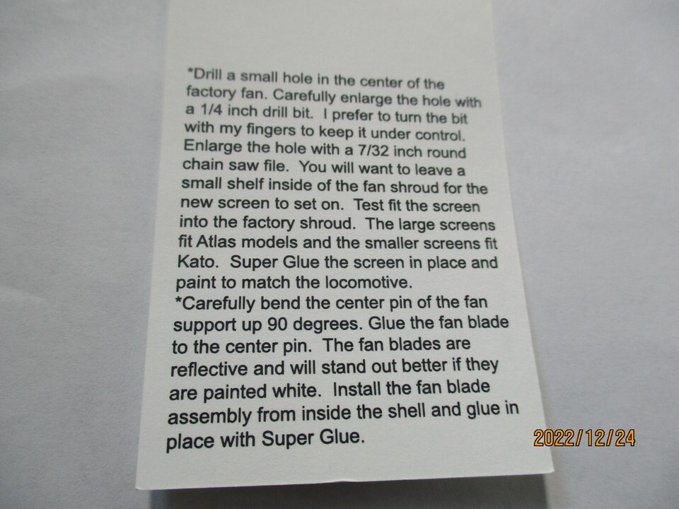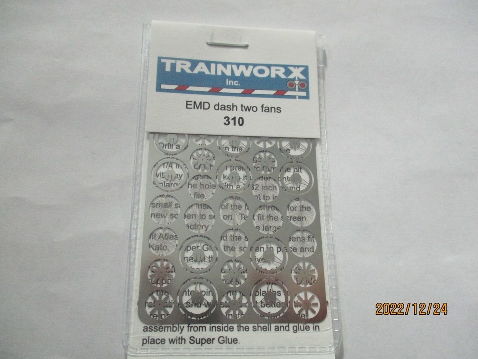 Trainworx EMD Dash Two Fans. Eight blade and ten blade fans. Five screens for Kato and five screens for Atlas. N-Scale.