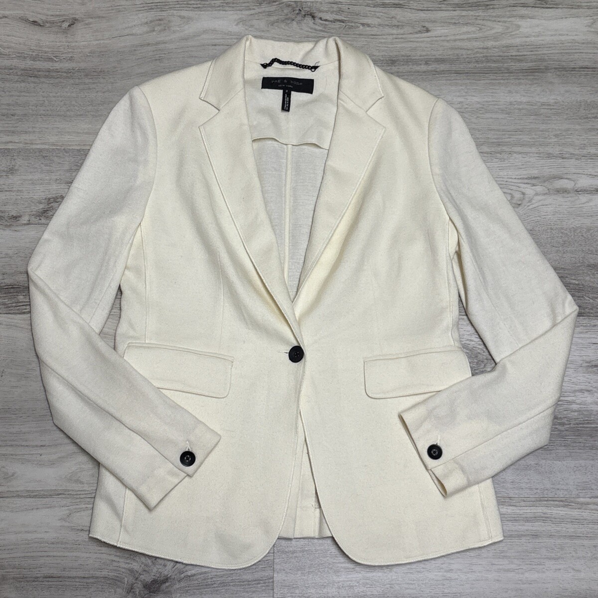Rag Bone Jacket Womens Sz 2 Ivory Wool Knit Club Blazer Single Breasted USA Made