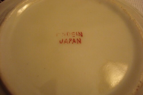 Made in Japan, 4 children cups(1" tall by 2 1'4") and saucers (4 1/4") handpainted. Very good condition, c1900s. Some color and gold fading and light surface scratches commensurate with age.