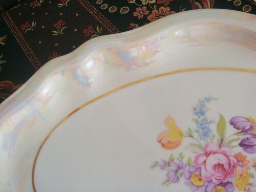 BOHEMIA- NEUROHLAU Karlovarsky Porcelain Vanity Tray Czech Republic, exclusive to Lovell -Bohemia- c1920s oval tray with lusterware border and transfer roses, very good condition, some light surface scratches commensurate with age, 14 x 9