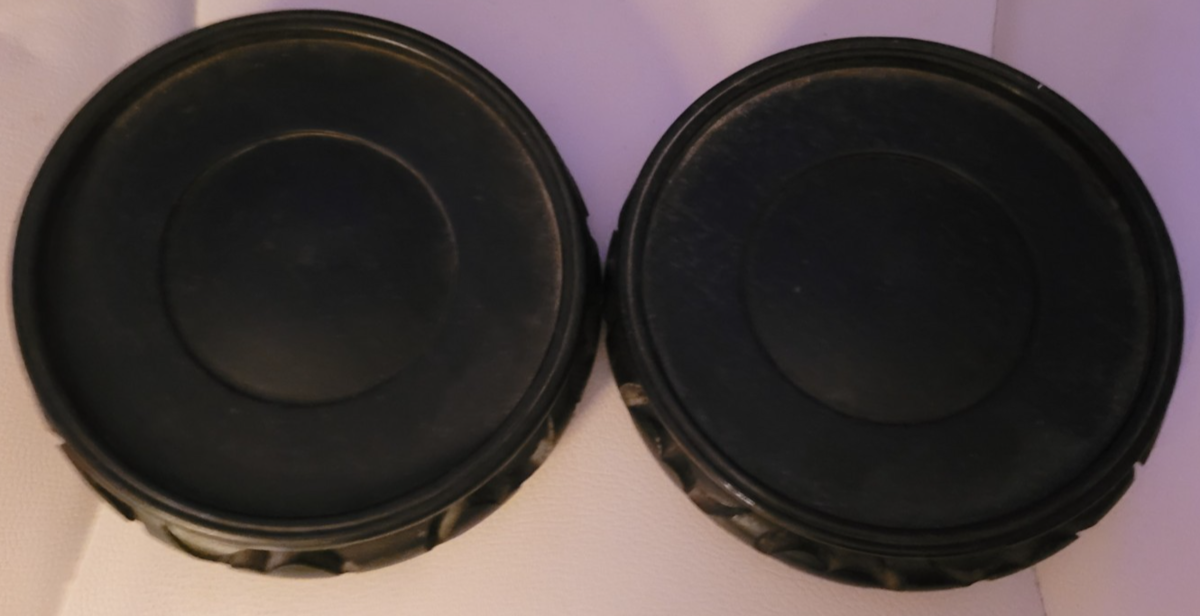 Pair Set Round Carved Wood Bowl Plant Display Stands Black Oriental Vase