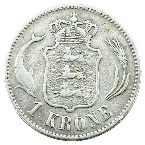 1876 ??Dinamarca 1 Krone Christian IX Coin muy bien