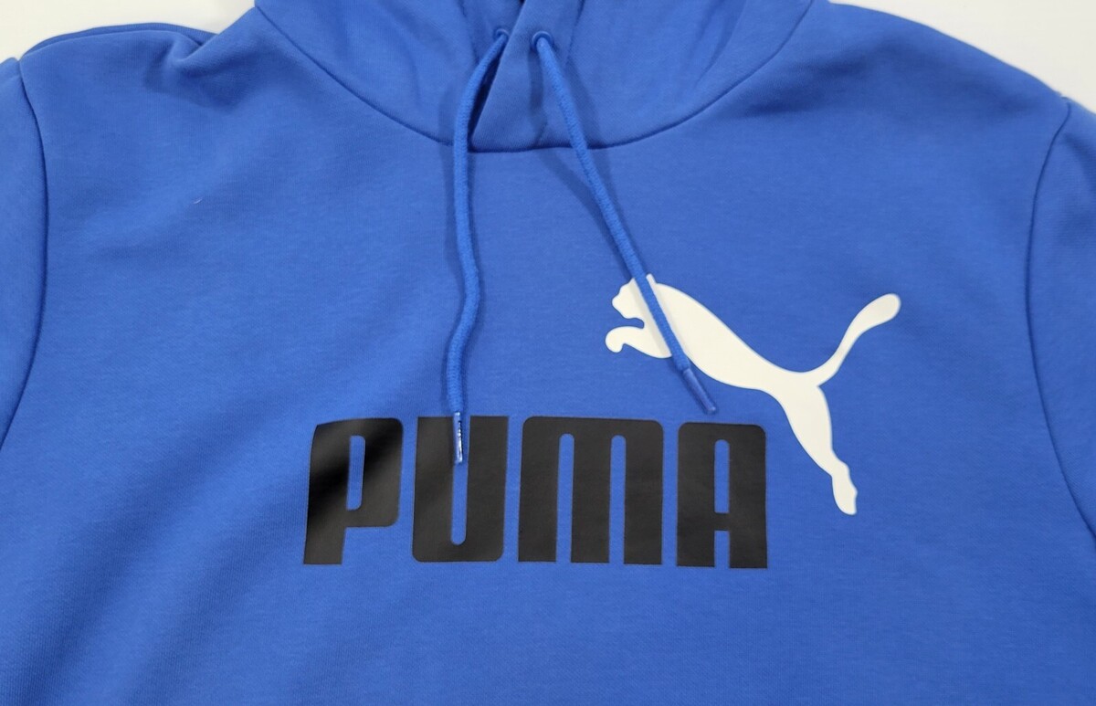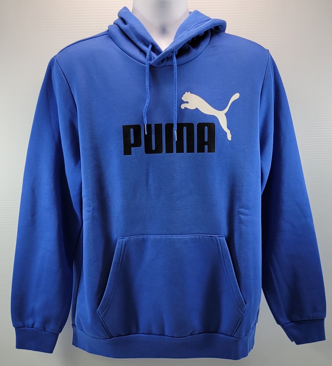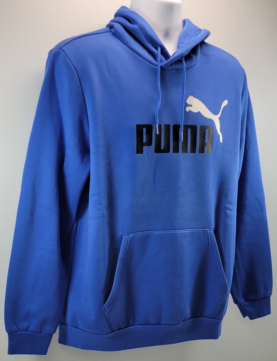 D) Puma Blue Men Pullover Long Sleeve Big Logo Hoodie Kangaroo Pocket Large