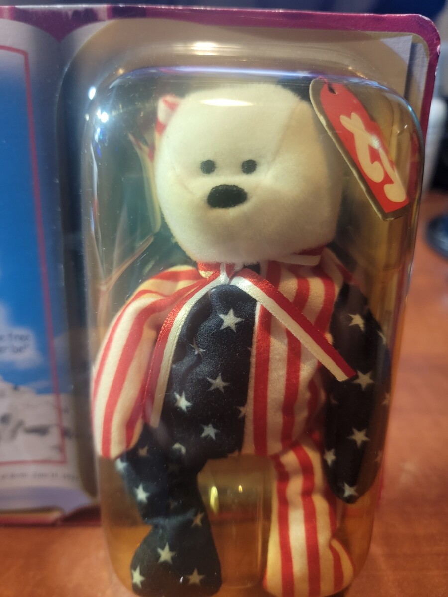 The Vintage Ty Teenie Beanie Baby Spangle the USA Bear from the International Bears II Collection is a highly sought-after collectible toy Born June 14th, 1999. This plush beanie features the iconic Spangle the USA Bear character, making it a must-have for any Beanie Babies collector. With its nostalgic appeal and original packaging, this rare find is sure to be a valuable addition to any collection. The little gem is Brand New in original packaging. Whats pictured is excatl what youll get. Thank you in advance for your consideration.