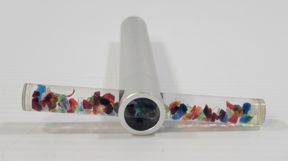 *B9) Vintage Oil Filled Silver 6" Glitter Wand Kaleidoscope Japan