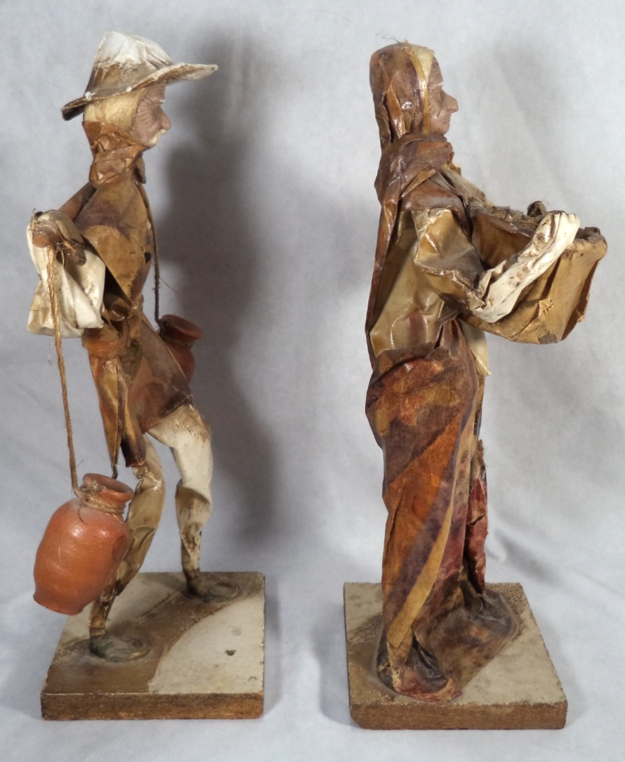 Set of 2 Vintage Mexican Paper Mache Folk Art Figurines Man and Woman Couple