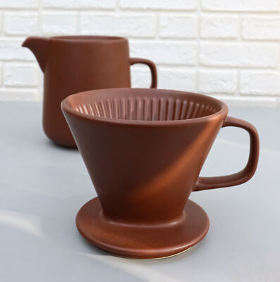 Brown Porcelain Coffee Maker Carafe Pot With Pour Over Dripper Filter Cup Set