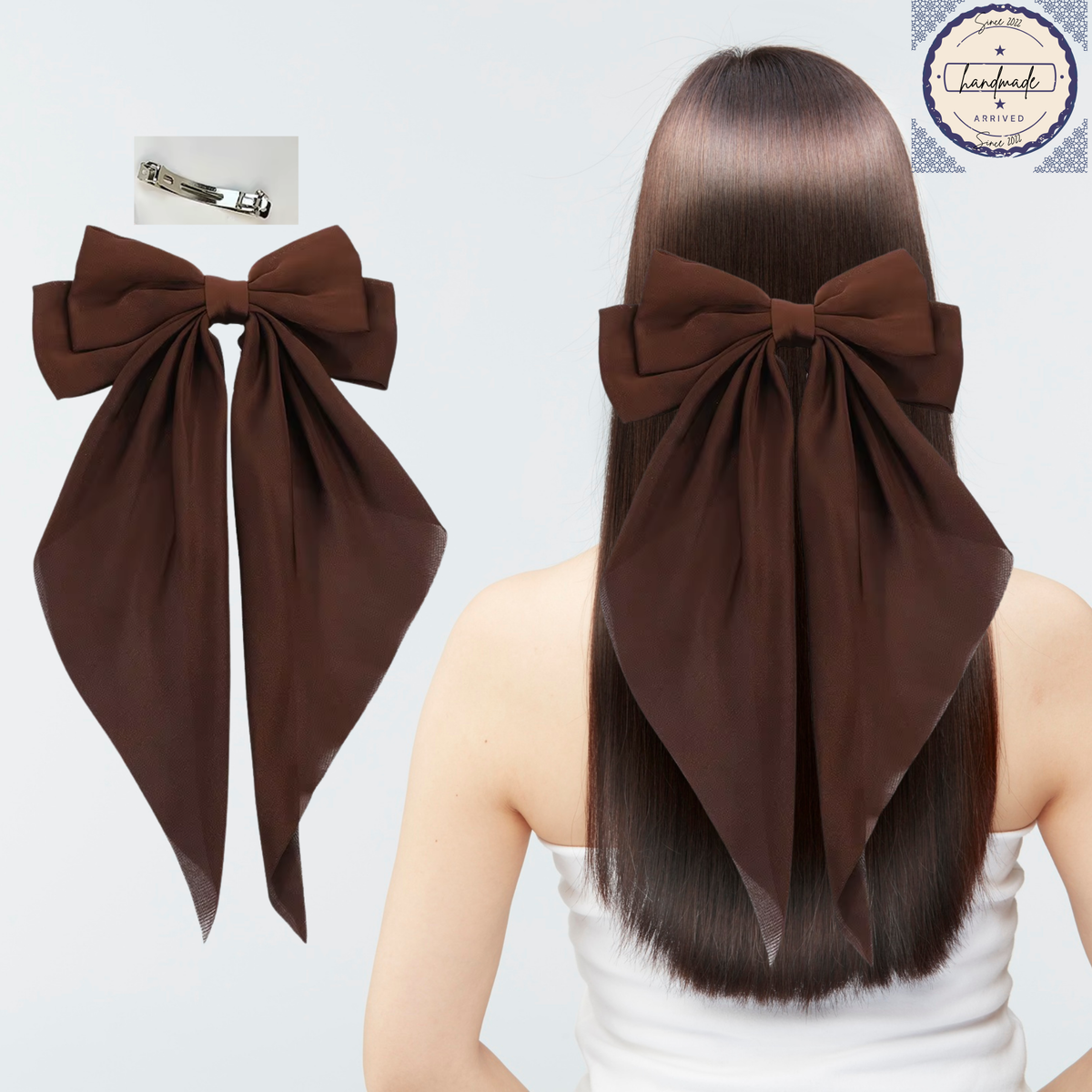 Christmas Sale Long Satin Hair Bow for Stylish Hairstyles and Everyday Use BROWN