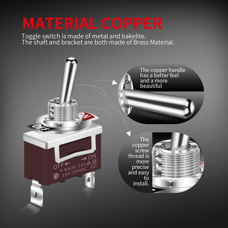 Feature: The SPST toggle switch waterproof is made of metal and bakelite Material. Delicate appearance with strong Construction. Look chic and high-end on your equipment.