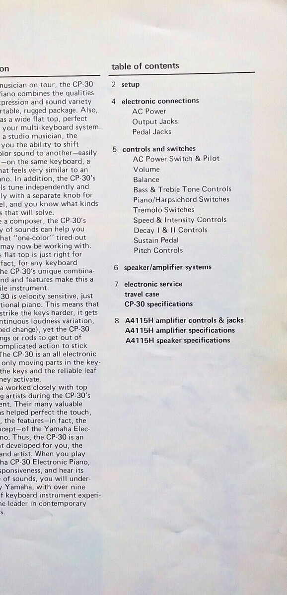 Yamaha CP-30 Electronic Piano Keyboard Original 70's Vintage Owner's Manual Book
