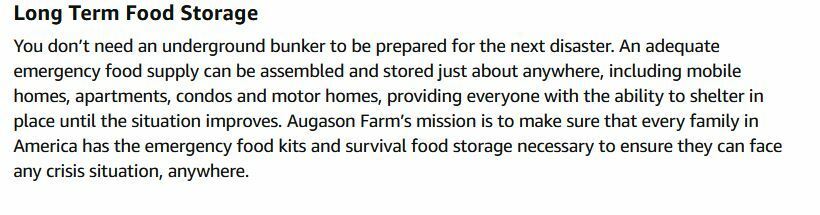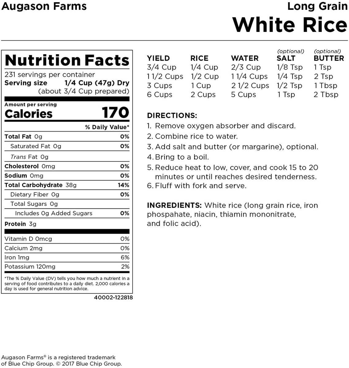 pail including 231 servings and 39, 270 total calories. Augason farm's