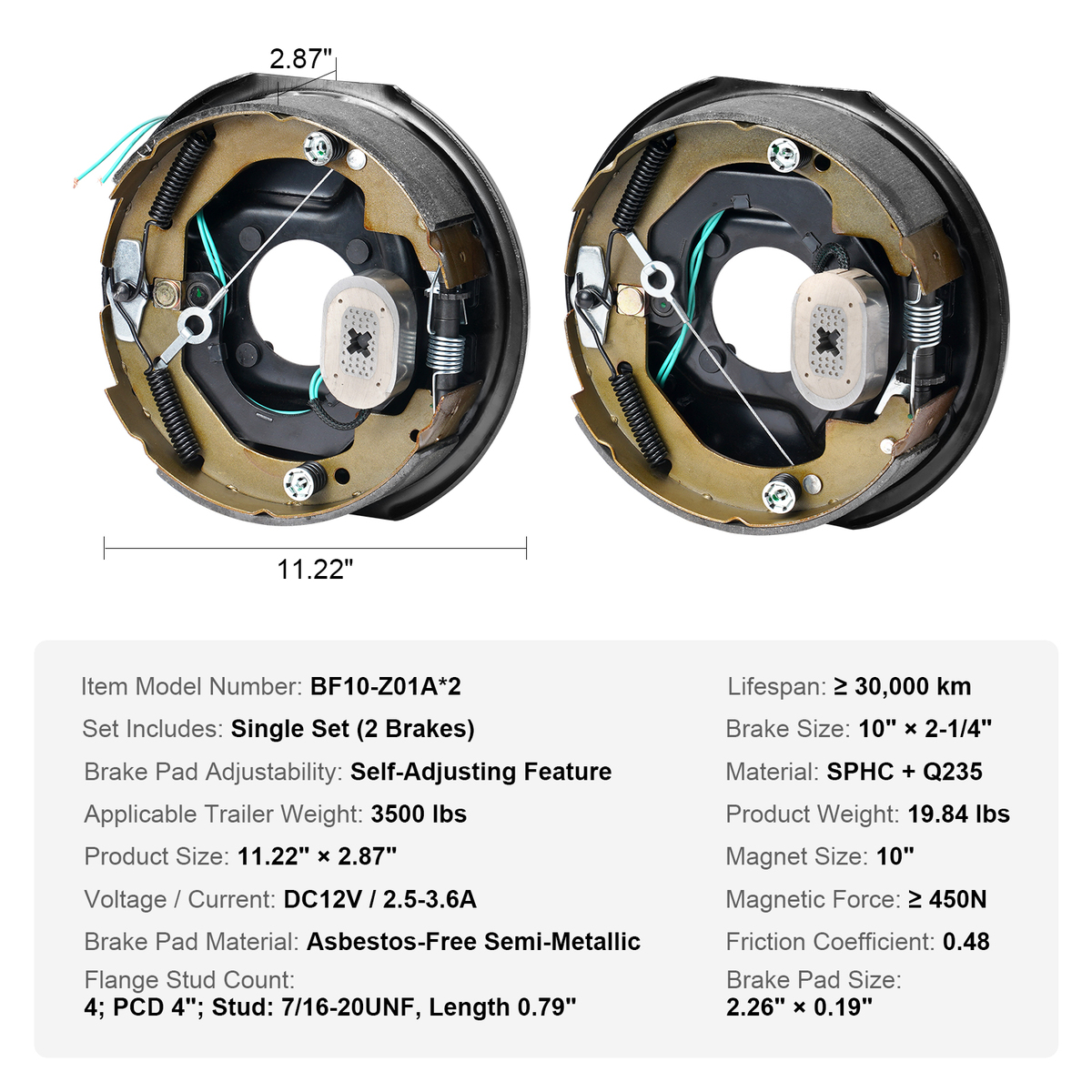 VEVOR Electric Trailer Brake Assembly, 10" x 2.25", 1 Pair Electric Brakes Kit