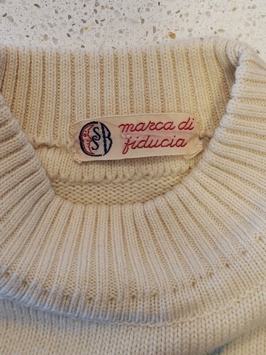 Vtg Ski Sweater Wool Cable Knit Pullover Italy Mens XS Ivory Embroidered 40s 50s