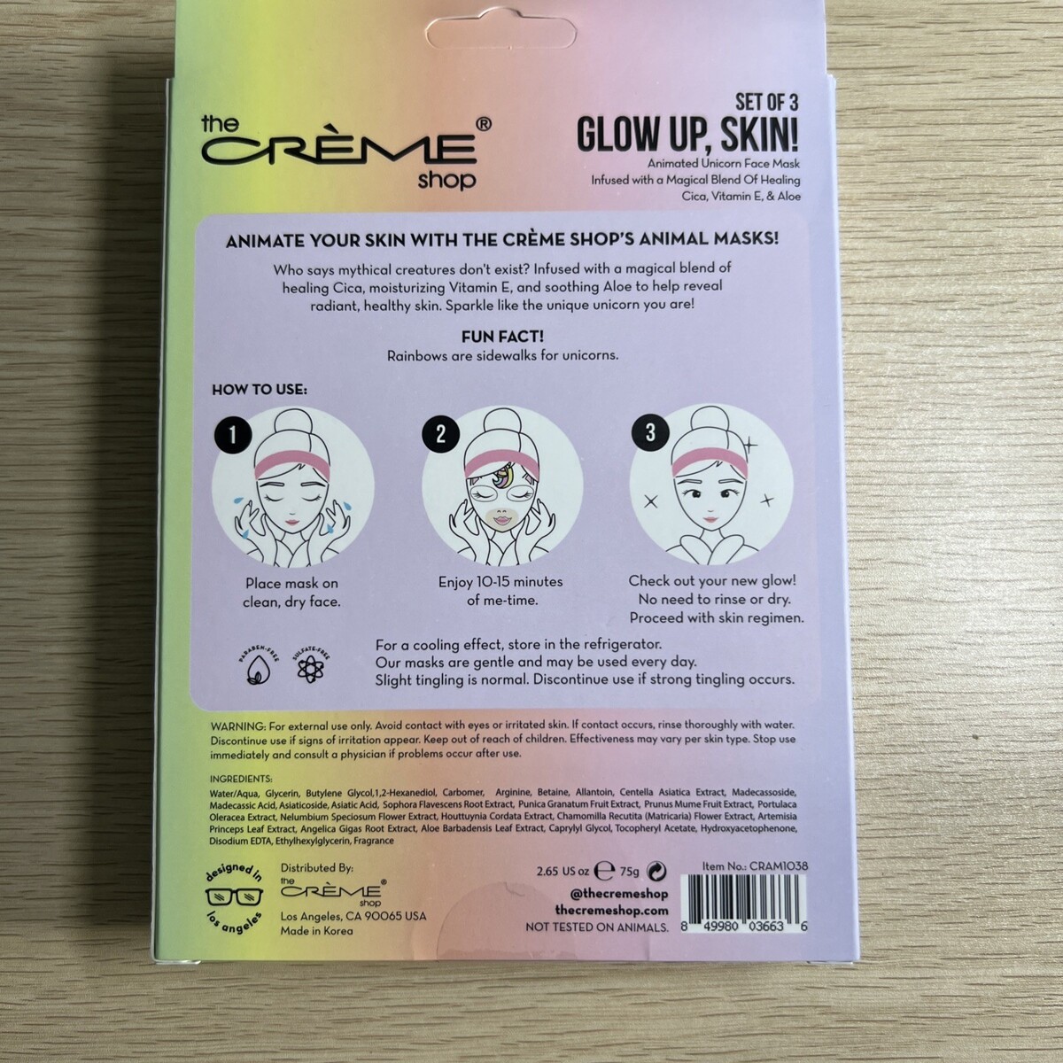 The Creme Shop Glow Up, Skin! Unicorn Facial Mask Sheets Set Of 3.